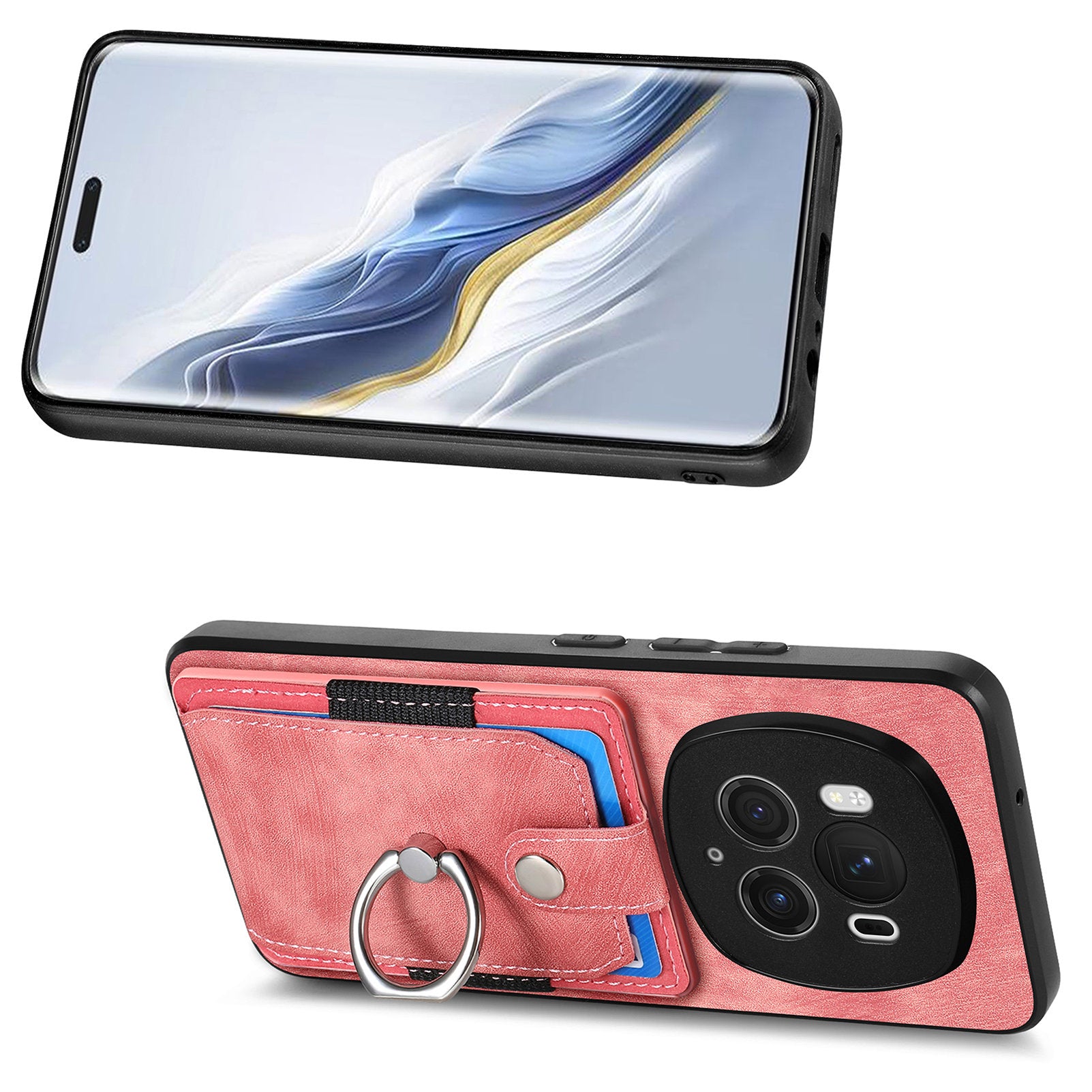 D2 for Honor Magic6 Pro 5G Case Card Slots Retro Leather Coated TPU Kickstand Cover - Pink
