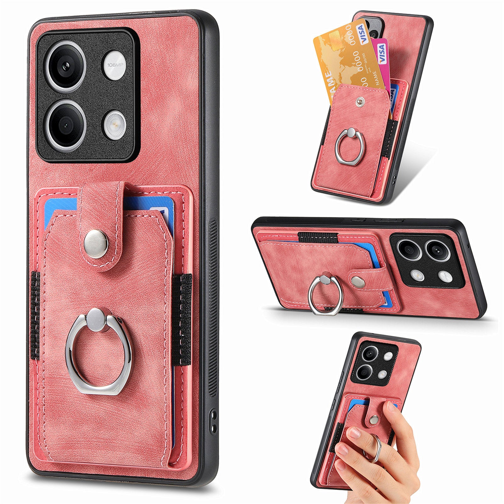 D2 for Xiaomi Redmi Note 13 4G Case Card Slots Retro Leather Coated TPU Kickstand Cover - Pink