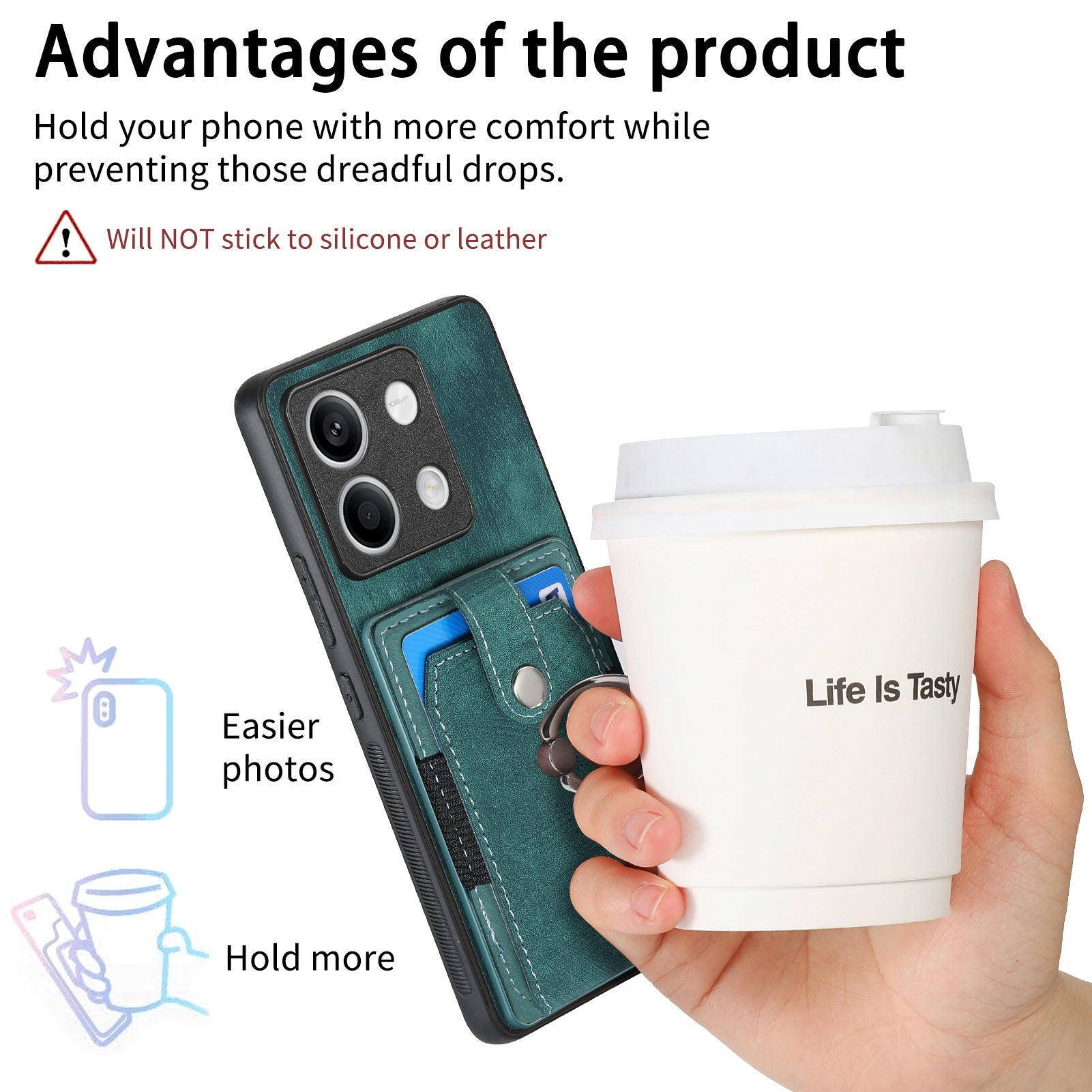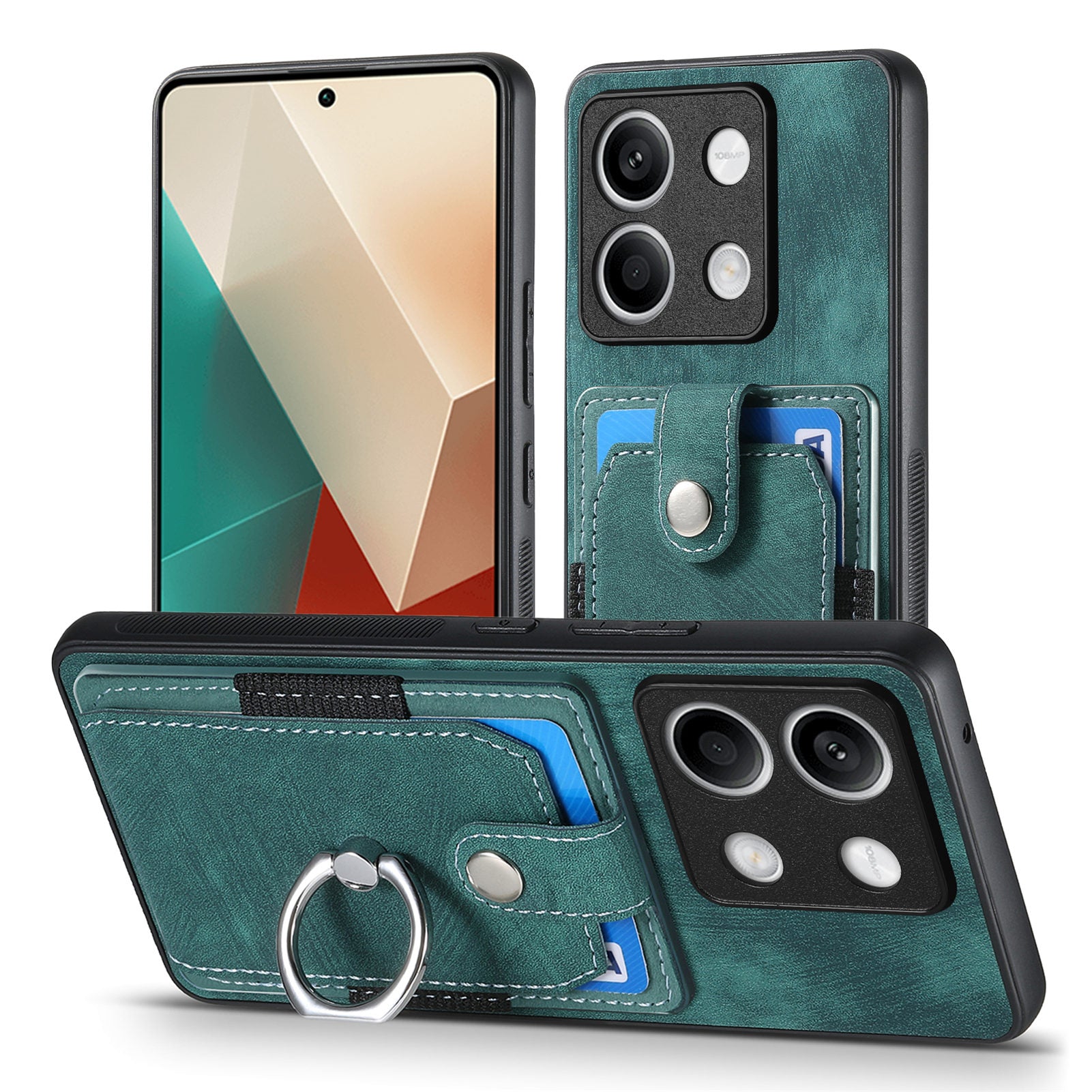 D2 For Xiaomi Redmi Note 13 5G Phone Case Vintage Texture Rotation Ring Holder Card Slots - Green