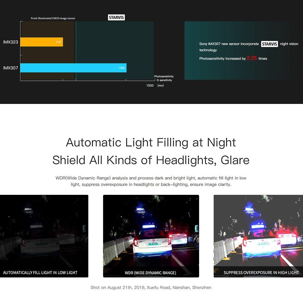 DDPai Dash Cam miniONE Night Version Car DVR eMMC 16GB/32GB H.265 Codec 1080P HD Driving Recorder 24H Guard IMX307 CN Version* Scan the QR-Code on the picture to download the English Manual.Features:* 24H parking monitoring protect your car day and night* Wolf-eye-like HD night vision support greatly improves the image processing ability at night.* IMX307s CMOS image sensor achieves high quality in the near infrared region.* 1080P F1.8 large aperture H.265 codec technology image Quality Increased by 50%.* Built-in G-Sensor and eMMC storage saves video* Creative appearance won German Red Dot and iF international awards.* Freely connecting to the APP built-in Wi-Fi module.* APP language: Support Chinese English Spanish French Germany Russia and more.Specifications CPU: 1080P @30fps/ HD CPULens: 6 glass lens 140 wide angleImage Sensors: IMX307Storage: Build-in eMMC high speed flash storage loop recordingVideo Output: Wireless video output support Android/iOS deviceG-Sensor: Built-in 3 axis accelerometer motion locking adjustable sensitivity via AppVideo Resolution: 1920*1080 @30fpsPhoto Resolution: 1920*1080RAM: 512MbPackage List:1 * Dash cam1 * Bracket1 * USB Charger1 * 5M Power Cable1 * Adhesive1 * Installation ToolFAQs:About Dash Cam1. How to change the Wi-Fi name and password of the Dash Cam?Make sure your dash cam is connect to App then go into Me-Settings-Camera Settings tap on Camera Name to change your Wi-Fi name tap on Camera Password to change your Wi-Fi name. In case you forget the password use a pin insert into REST hole to restore to default settings initial password is 1234567890.2. Shall I keep the dash cam connected with my phone when it is working?The dash cam starts to record videos automatically when the car is started without needing to connect to your phone. However if they are connected you can preview download and play back the videos from the app on your phone.3. I am seeing a solid red light and the App fails to connect to the dash cam. What can I do?Please format the eMMC to reset your card then try to reset your dash cam.If you still have a problem please email to feedback@ddpai.com and our support team will be happy to assist you.4. What's the use of hardwire kit?DDPAI hardwire kit features Intelligent power management ability it will stop your car battery from descending below a certain battery level preventing potential damage to your vehicle. When your hardwiring kit senses the battery dropping below the 'minimum' level which you can pre-set from DDPAI App it will automatically cut off your power - and as a result you will never have to worry about your vehicle not starting up and your dash cam will still be able to record while your ignition is off. Dash Cam automatically enter 1-second 1-frame time-lapse mode after the car shuts off which will increase parking monitoring coverage time and stored data amount by 30 times better realize 24-hour all-weather parking monitoring.Wi-Fi and App Connectivity1. I can't connect to my DDPAI Dash Cam from the App?There are several reasons this may happen:1) Ensure the DDPAI Dash Cam has been turned on (the working indicator light is blinking slowly).2) Ensure you can find the Wi-Fi from WLAN (Android) / Wi-Fi (iOS) list one common problem is that your phone/tablet disabled App from trust application. You need to have your device enable DDPAI App permission from Settings- Security and privacy- Application Permissions to the DDPAI Dash Cam Wi-Fi. It may also help to connect to the DDPAI Wi-Fi directly from your device's Wi-Fi settings menu then returning to the DDPAI App and proceeding as usual.3)In cases when your device installed third party App manager find DDPAI App and enable all permissions.4) It may also help to power cycle (reboot) the DDPAI Dash Cam prior to attempting to connect via Wi-Fi.2. How does the Wi-Fi work? Do I have to turn on hotspot on phone?You connect your phone to the camera Wi-Fi in order to access the photos and videos. It records video whenever it has power so your phone doesn't have to be connected to it for it to record.It has it's own memory card so it doesn't have to be connected to your phone to save data.3. After connected with the dash cam Wi-Fi why can't my Android access it's mobile data?Due to an Android bug affecting all dash cams the phone cannot access mobile data while it is connected to the DDPAI Dash Cam's Wi-Fi. If you want to use your phone's data network simply connect to the DDPAI Dash Cam's Wi-Fi when you need to watch the recorded videos only.4. Wi-Fi is always disconnected?First go in to Settings Wi-Fi and hit the menu button then select Advanced. You should then see Scanning always available with a checkbox next to it. Uncheck the box and your device will no longer scan for networks at all times. Second if Scanning always available checkbox is checked make sure your smart phone is near the dash cam.Third make sure your devices are not surrounded by too many Wi-Fi networks.Storage1. How to format the eMMC storage card?you can format it via App. Long-time use of the card will compromise the read / write speed. We suggest you format it regularly to make video recording smoother.2. How do i access the history recordings with eMMC build in storage?you can access Dash Cam by connecting it to PC via an Android phone's USB data cable.Others1. What if the mount loses it's stickiness?There is a spare adhesive pad. Also clean the mounting area before re-attaching it to the windshield.2. How to keep the lens clean?Do not touch the lens with your hands to avoid fingerprint smudges. Use a clean soft cloth to wipe the lens when it gets dirty. For better results please keep the car windshield clean to avoid contamination.3. What is IPS dual secure power technology?DDPAI has applied for patented IPS security power protection technology double protection for software and hardware. When in parking mode it also detects battery voltage through software and hardware and will cut off if it sense