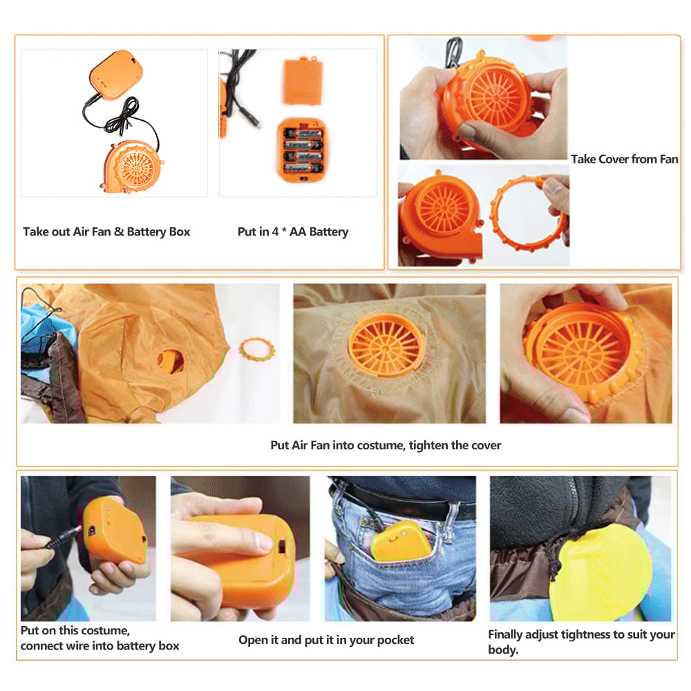 Lacking in ideas for your fancy dress party? Why not come to this walking inflatable dinosaur costume it is cute and convenient to put on/off. When fully inflated it is big lovely and can increase happy atmosphere. You can wear it to walk everywhere easily. Perfect to use at: Halloween/Xmas celebration party bar park fancy dress carnival cosplay etc.Features:Water-proof polyester wipe clean surface and hand washable.Quick to inflate with air pump powered by 4 * 1.5V AA battery(not included).Suitable for 1.6-1.8M height adult to wear.Freely walk/move to everywhere without any hinder.Perfect to use at: Halloween/Xmas celebration party bar park fancy dress carnival cosplay etc.Specifications:Style: Walking DinosaurMaterial: PolyesterSize: Adult Size / Child Size (Optional)Product Weight: 351g / 12.38oz(Child Size); 401g / 14.14oz(Adult Size)Package Size: 30 * 25 * 6cm / 11.81 * 9.84 * 2.36 (Child Size); 30 * 25 * 7.5cm / 11.81 * 9.84 * 2.95 (Adult Size)Package Weight: 390g / 13.75oz(Child Size); 560g / 19.75oz(Adult Size)Package Included:1 * Inflatable Cloth1 * Air Pump1 * Battery Box