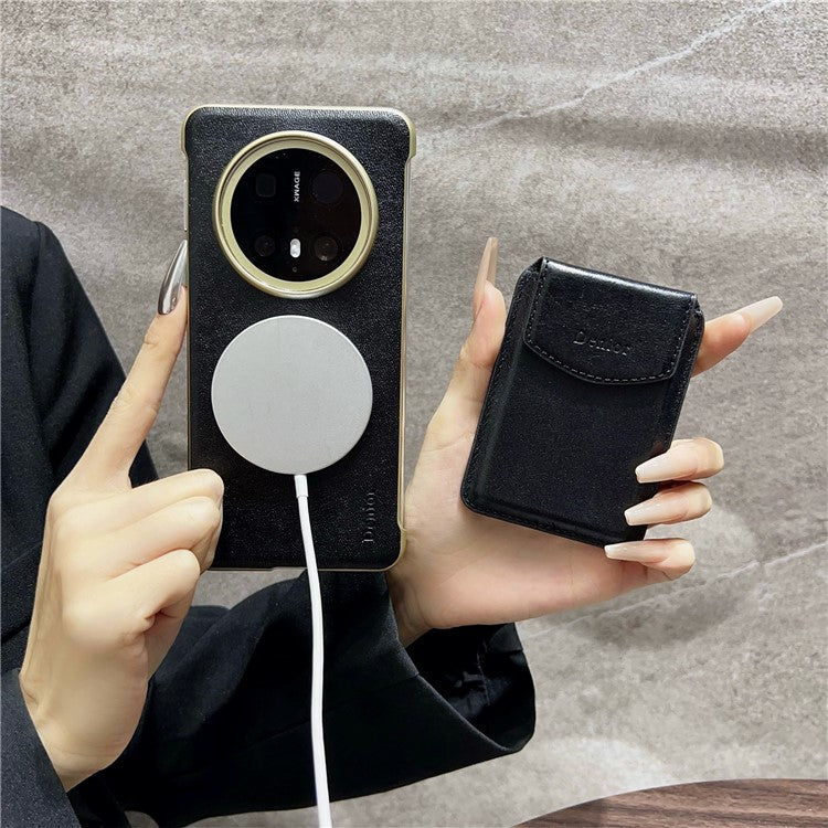 DENIOR For Huawei Mate 70 Pro / 70 Pro+ Magnetic Case Genuine Cow Leather PC Kickstand Phone Cover with Card Holder - Black