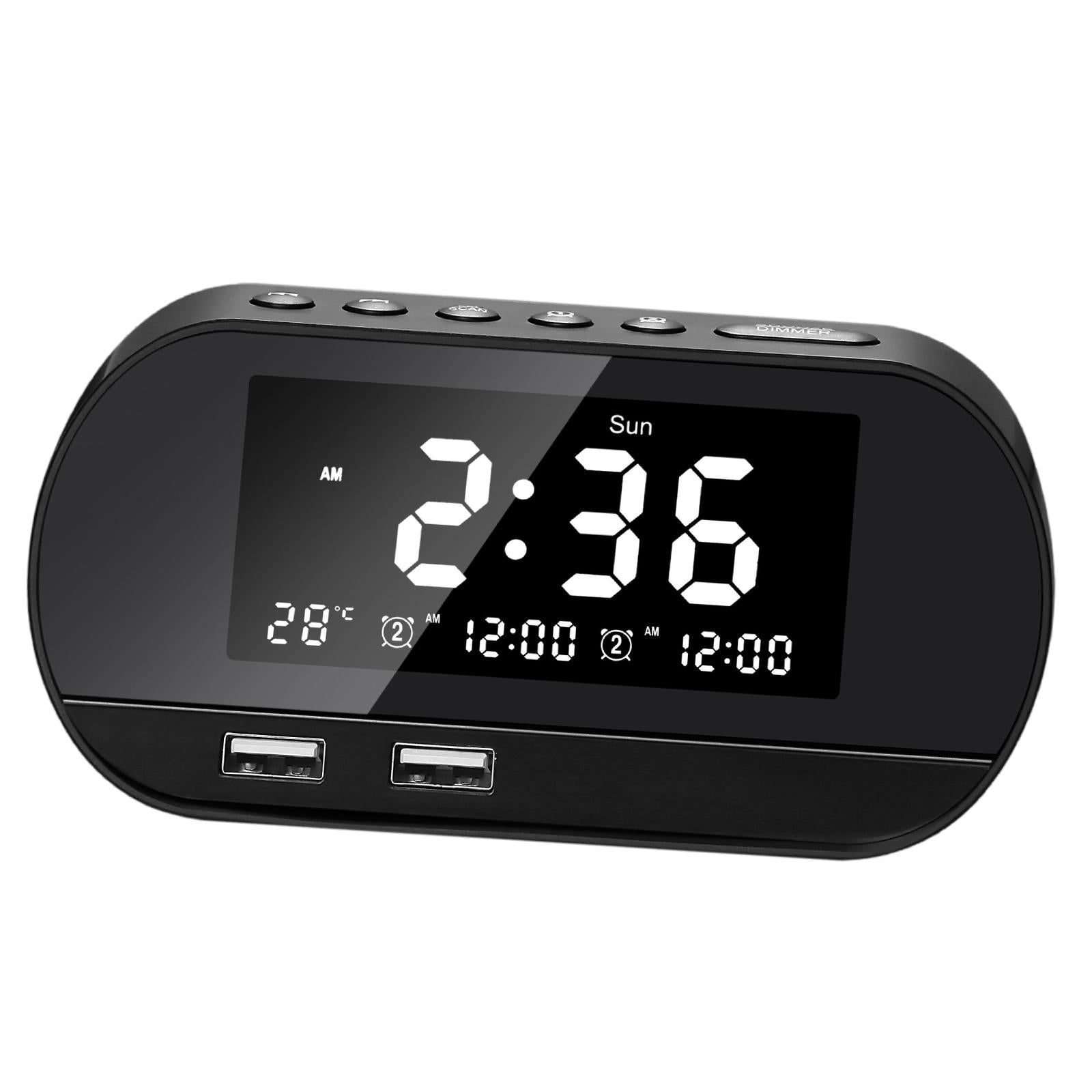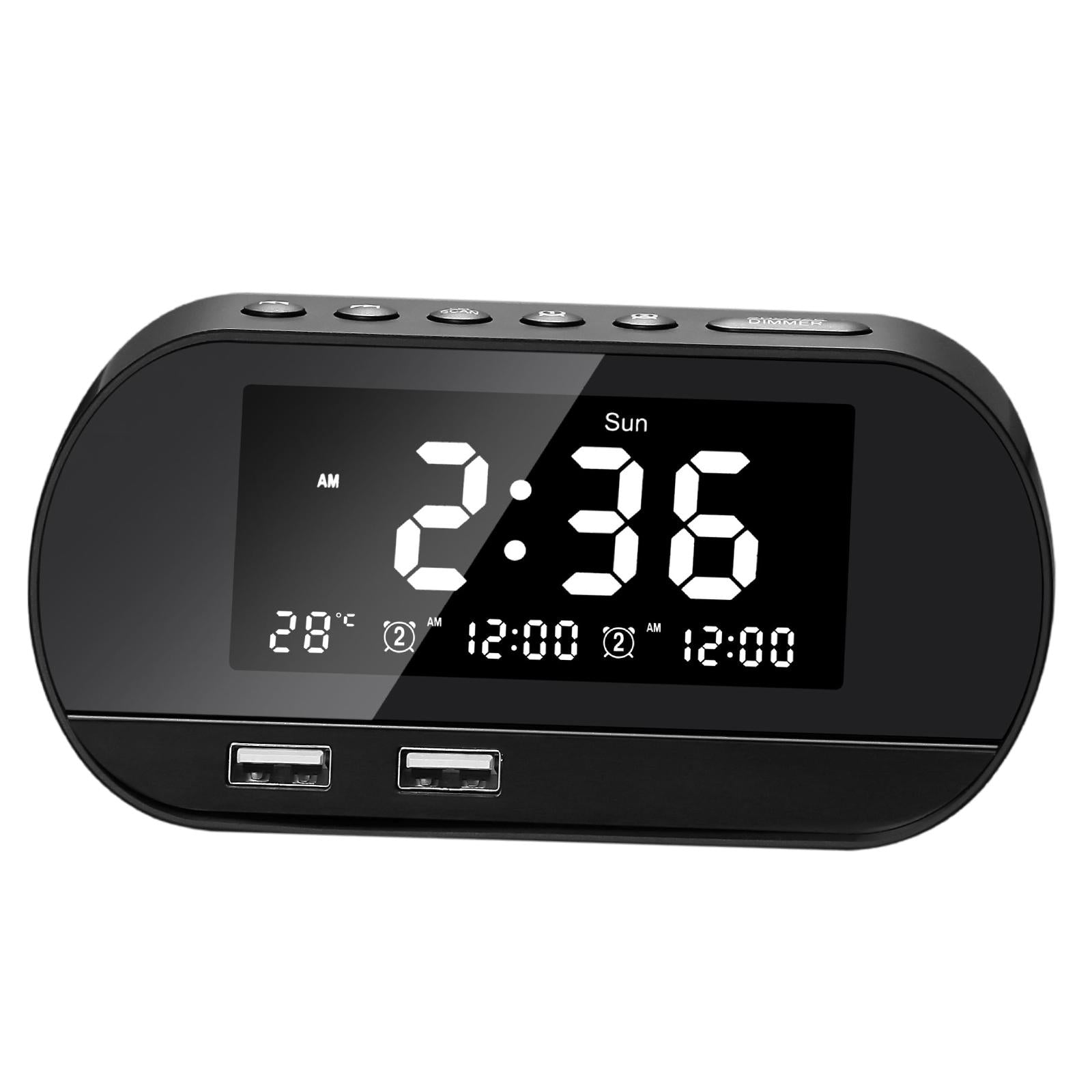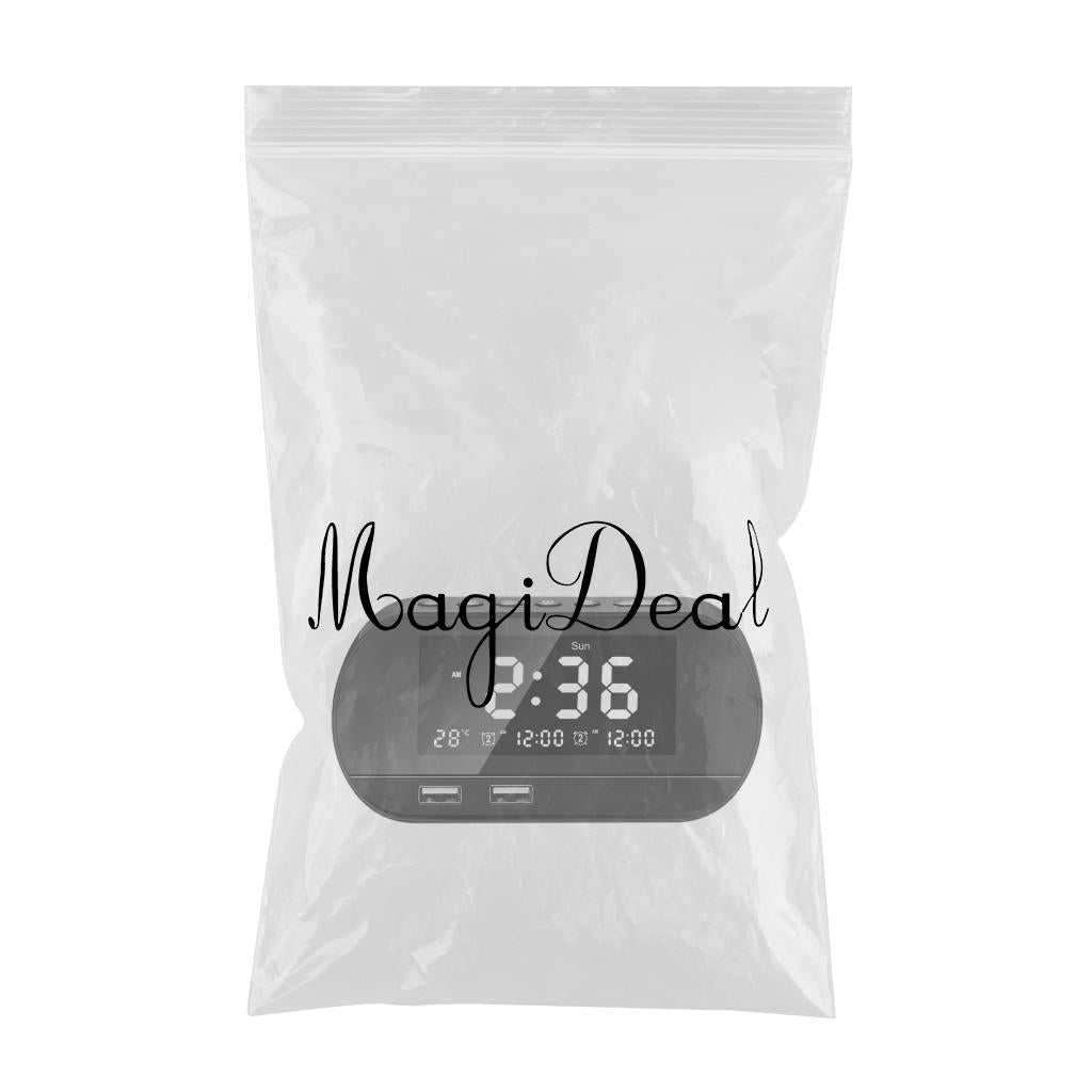 Desktop LED Mirror Alarm Clock with HIFI Speaker FM Dual USB Ports Black