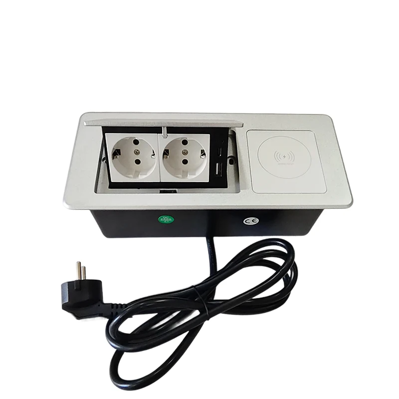 : Desktop pop up Socket 2 EU plug with USB A&C charging with Wireless charging with 1.8m power cable