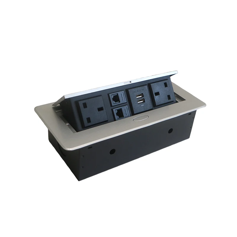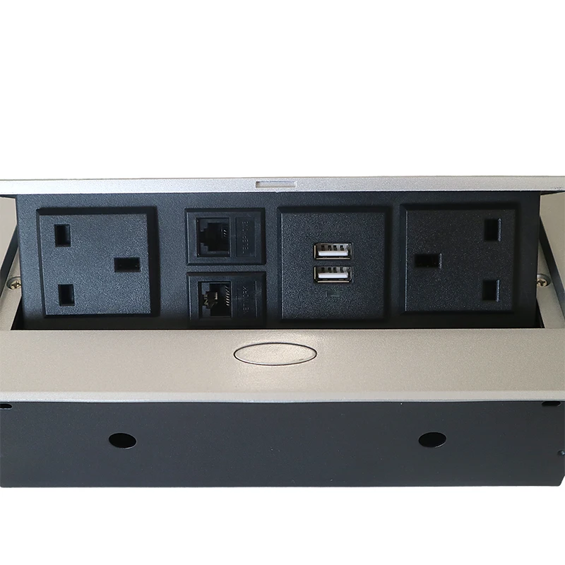 Desktop pop up Socket 2 UK plug with USB A&A charging with Telephone/ Network with 30cm cables