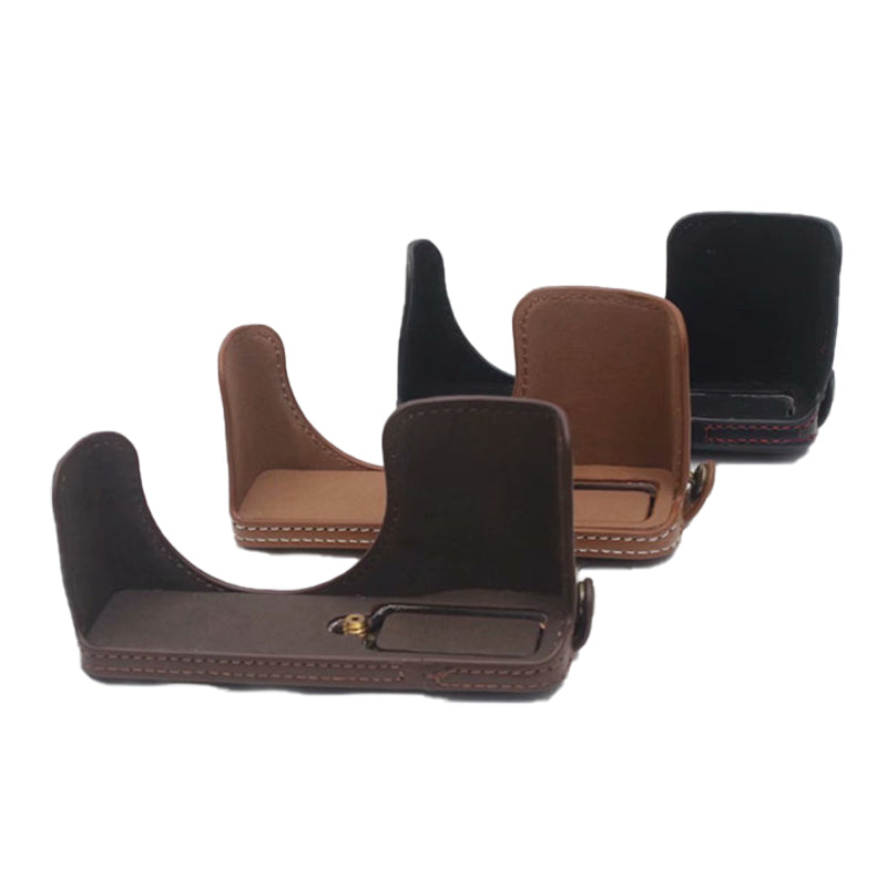 Detachable Battery Opening Design PU Leather Camera Bag Protective Cover with Hand Strap for Ricoh GR III - Coffee