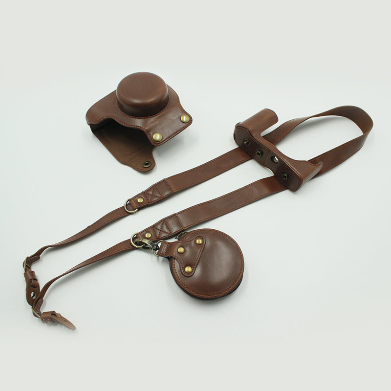 Detachable Camera PU Leather Protective Bag Case with Shoulder Strap Small Accessories Pouch for Olympus EP7/PEN E-P7(14-42mm) - Coffee