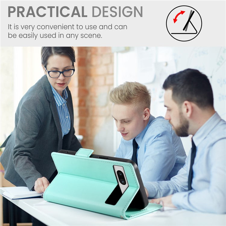 DF-010 For Google Pixel 7a Case Dual Magnetic Clasps PU Leather Flip Phone Cover - Mint Green