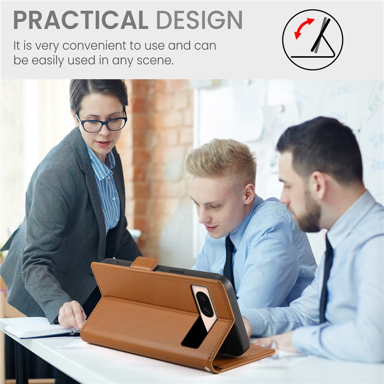 DF-010 For Google Pixel 8a Case PU Leather Wallet Stand Phone Cover - Brown