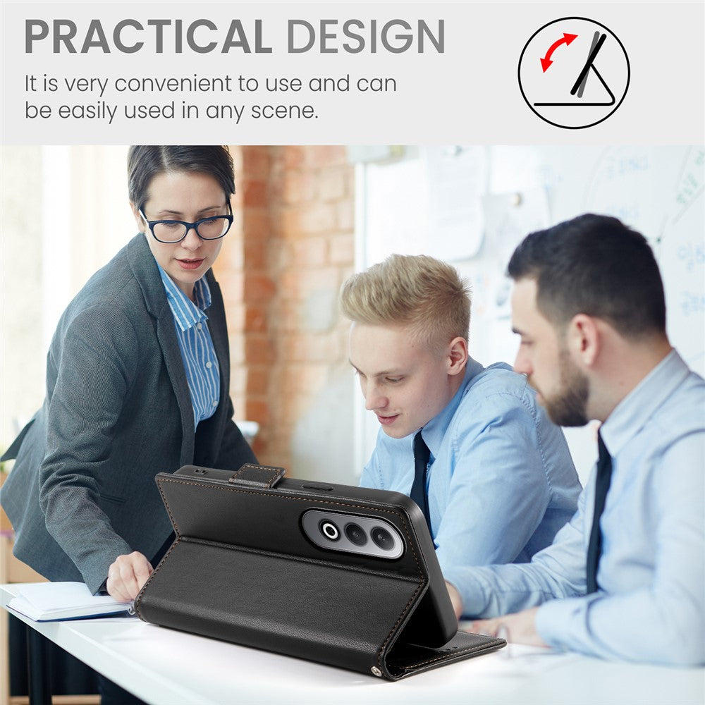 DF-010 For Oppo K12 / OnePlus Nord CE4 5G Stand Case Anti-Drop PU Leather Wallet Phone Cover - Black