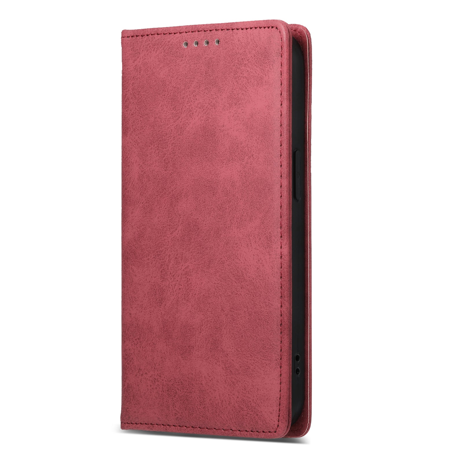 DF-05 For Xiaomi Redmi Note 13 4G Wallet Case Magnetic Auto Colsing Phone Cover - Red