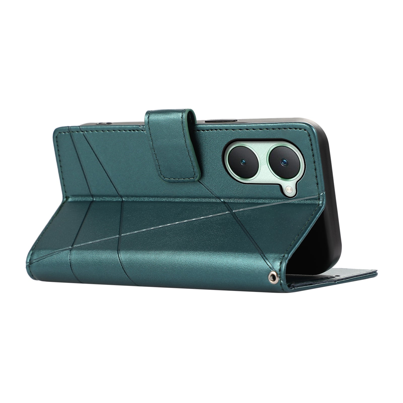 DF-06 For vivo Y03 Phone Case Line Imprinted Leather Cover Cell Phone Parts Wholesale - Green