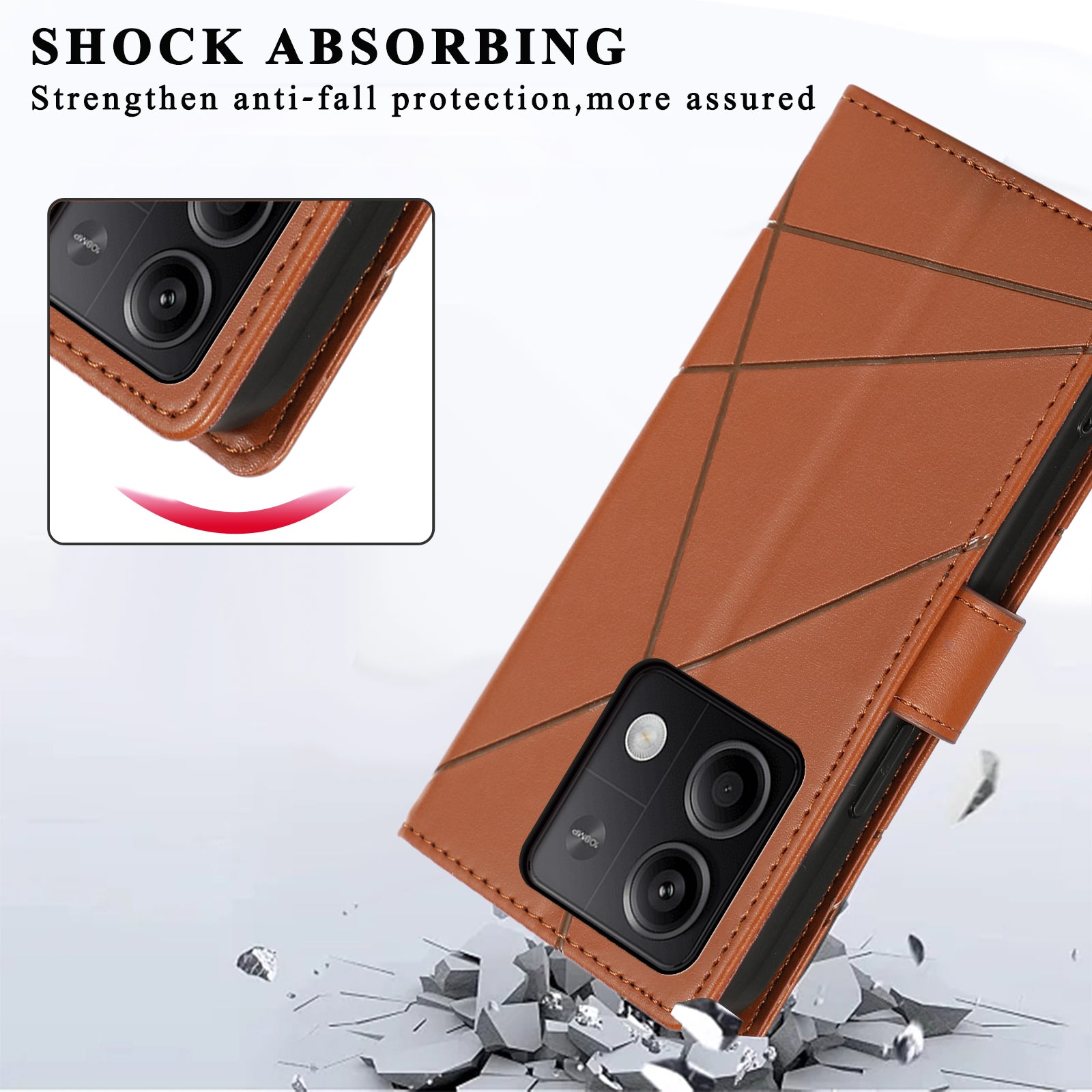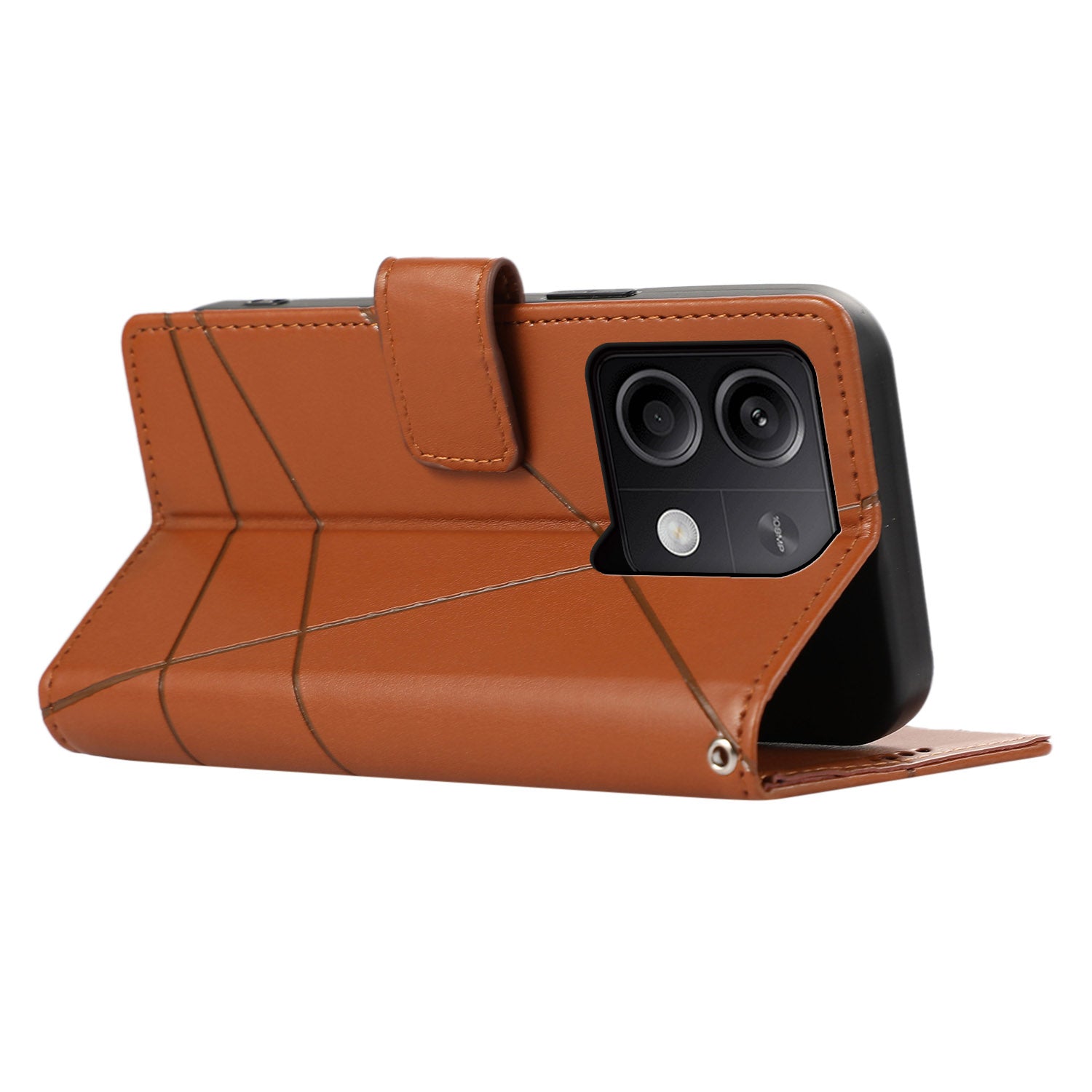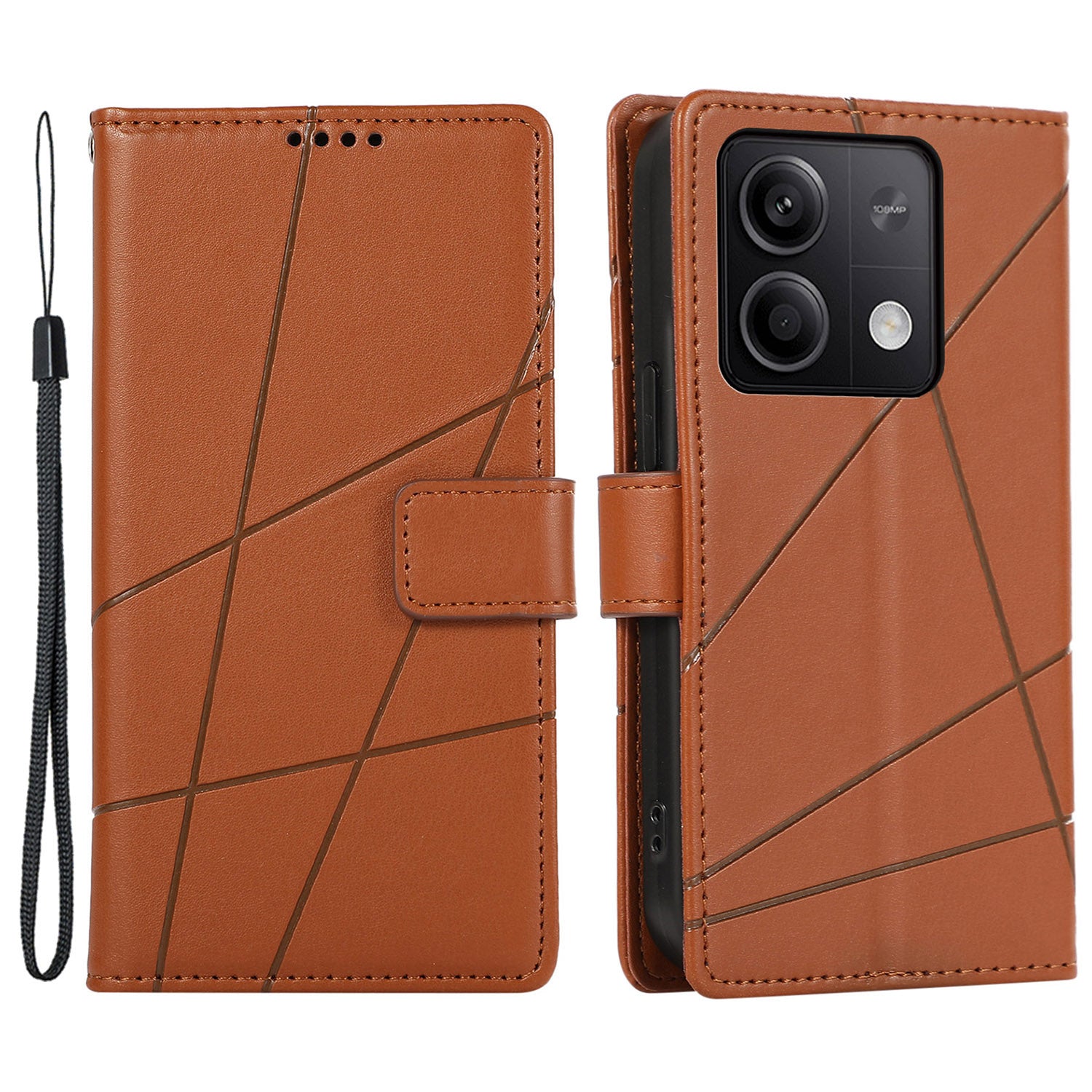 DF-06 For Xiaomi Redmi Note 13 5G / Note 13 5G (China) Case Line Imprinted Leather Cover - Brown