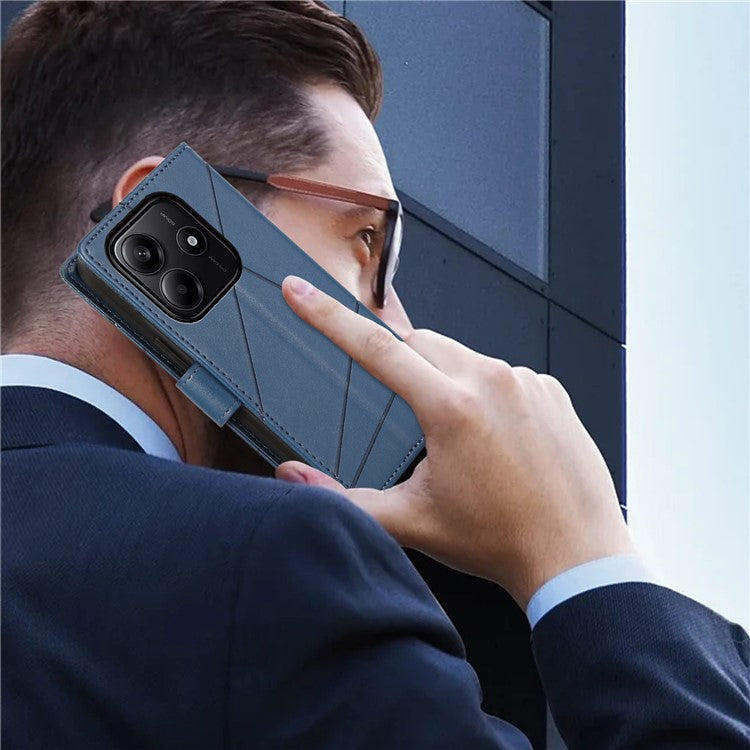 DF-06 For Xiaomi Redmi Note 14 5G / 14 4G Phone Case Line Imprint Leather Wallet Cover - Blue