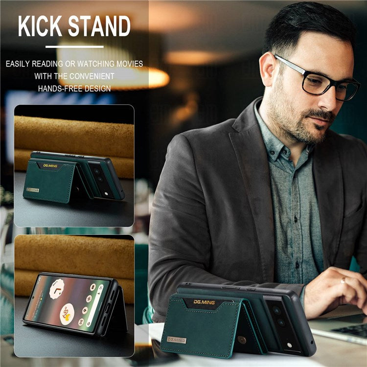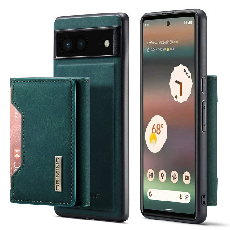 DG.MING M2 Series for Google Pixel 6a Detachable 2-in-1 Magnetic Wallet Phone Case Anti-scratch Kickstand Cover - Green