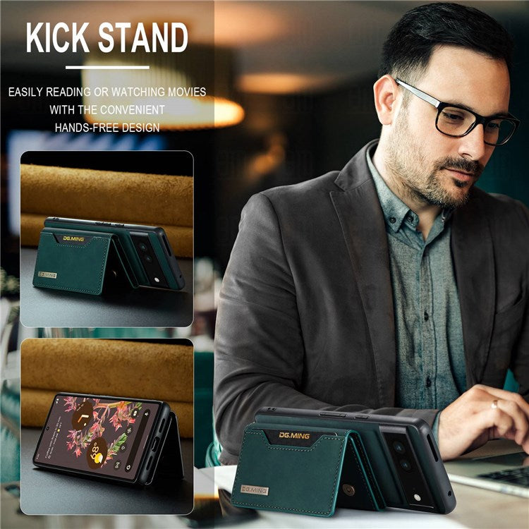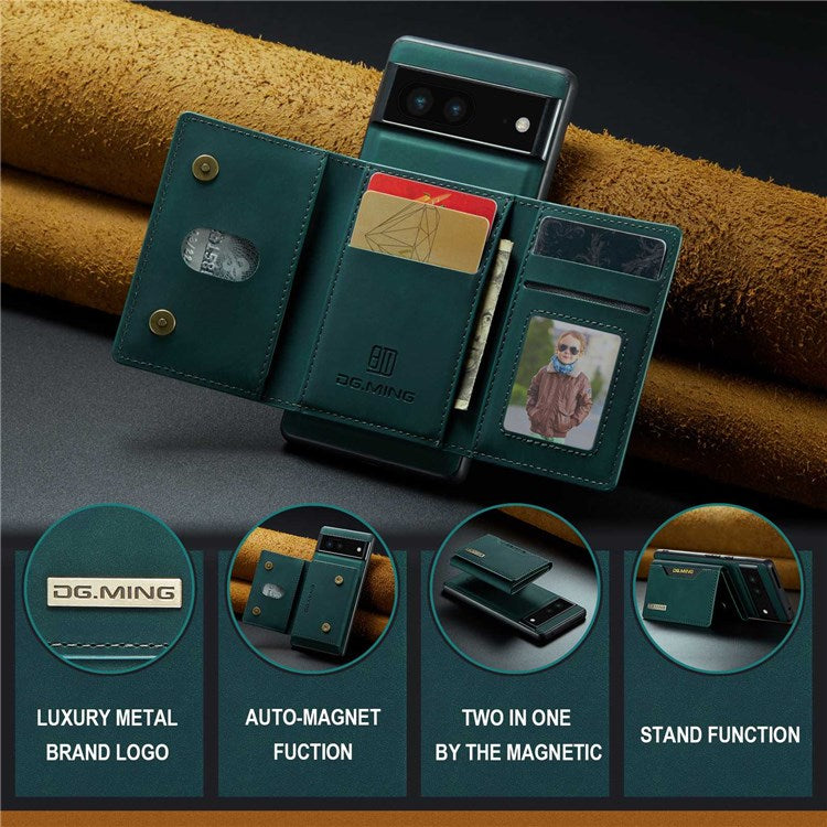 DG.MING M2 Series for Google Pixel 7 5G Magnetic Absorption Drop-proof Phone Case with Detachable Wallet/Kickstand - Green