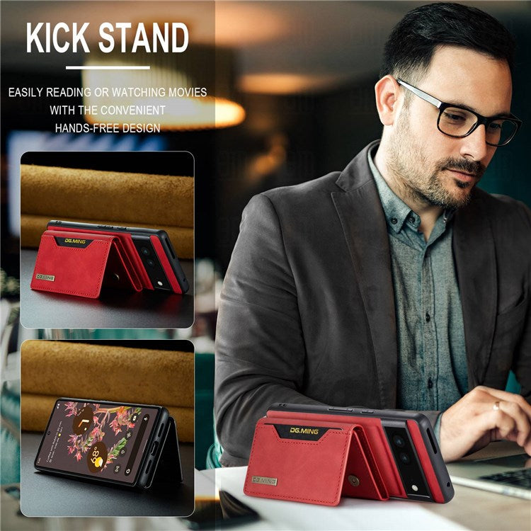 DG.MING M2 Series for Google Pixel 7 5G Magnetic Absorption Drop-proof Phone Case with Detachable Wallet/Kickstand - Red