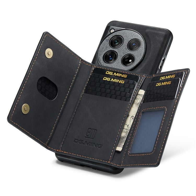 DG.MING M2 Series for OnePlus 12 5G Kickstand Case Detachable Magnetic Wallet Phone Cover - Black