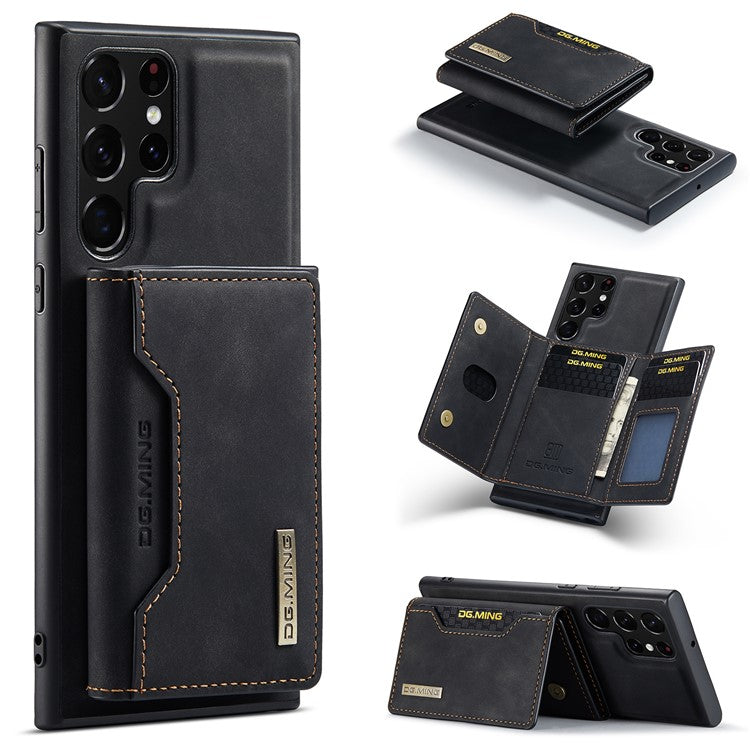 DG.MING M2 Series for Samsung Galaxy S25 Ultra Case PU+PC+TPU Phone Cover Detachable Wallet - Black