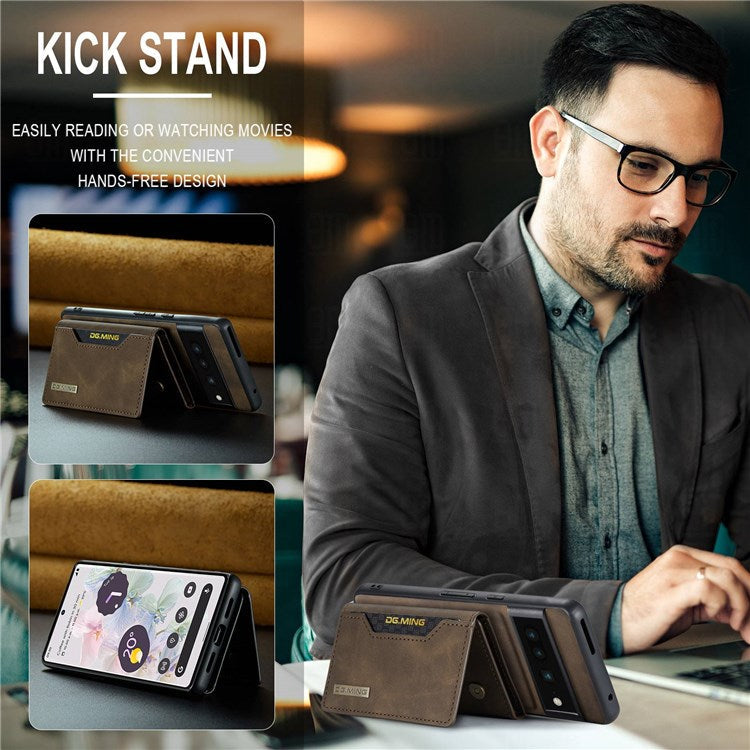 DG.MING M2 Series Magnetic Wallet Phone Case for Google Pixel 7 Pro 5G, Detachable 2-in-1 Kickstand Drop-proof Cover - Coffee