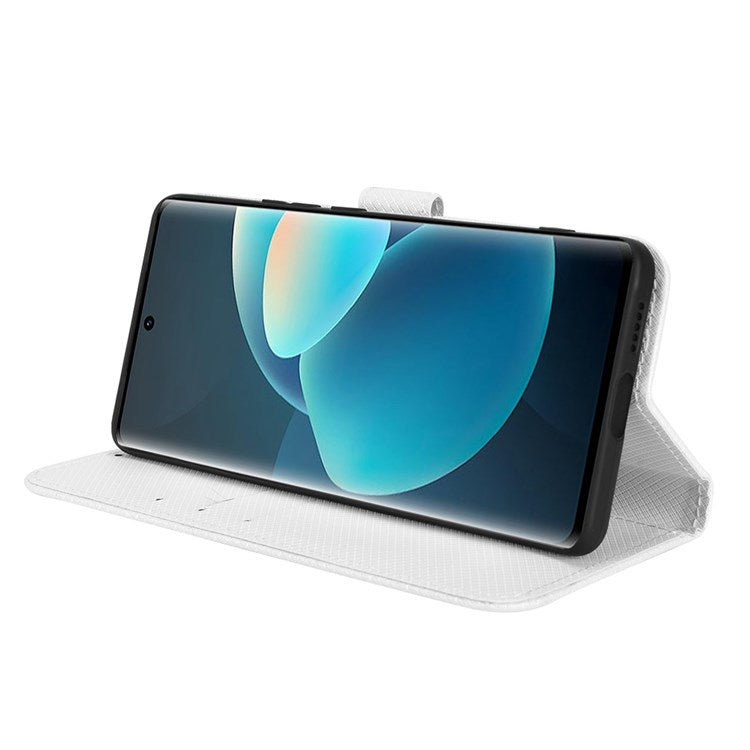 Diamond Texture Case for vivo X60 Pro 5G (Global)/X60 5G, PU Leather Anti-drop Wallet Stand Phone Cover - White