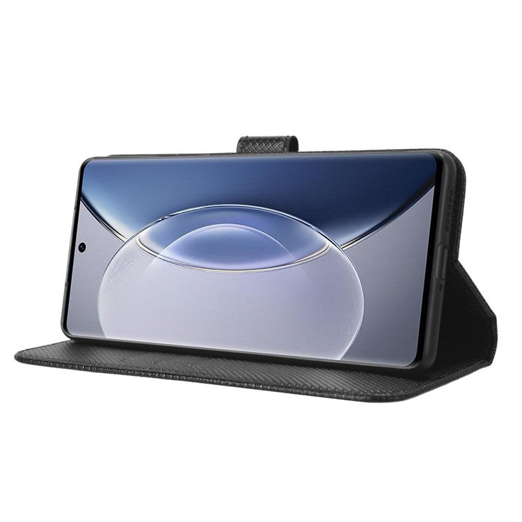 Diamond Texture Phone Leather Case for vivo X90 Pro 5G, Wallet Cell Phone Phone Stand Cover - Black