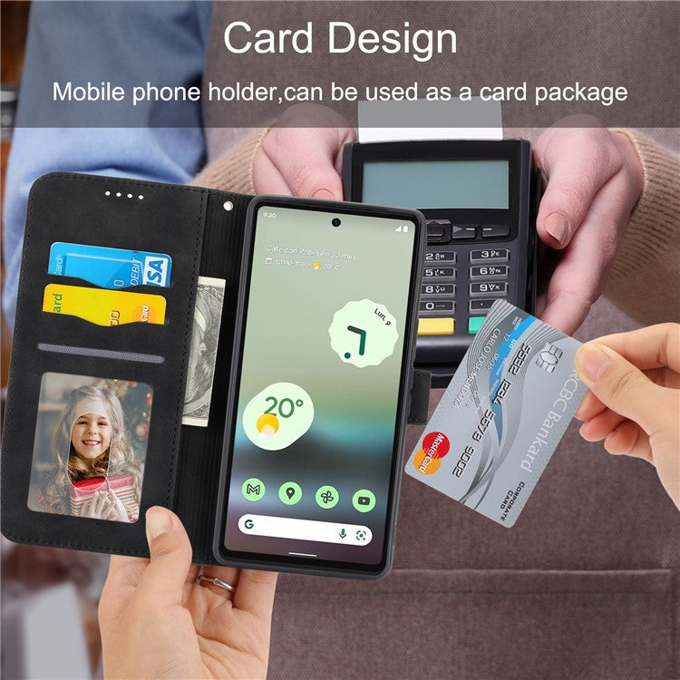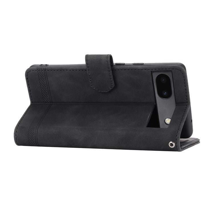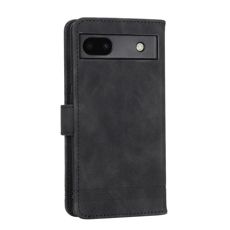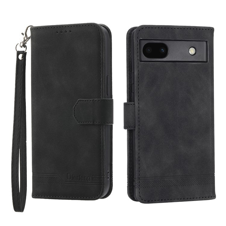 DIERFENG Anti-drop PU Leather Phone Case for Google Pixel 6a, DF-03 Lines Imprinted Scratch-resistant Phone Cover Stand Wallet - Black