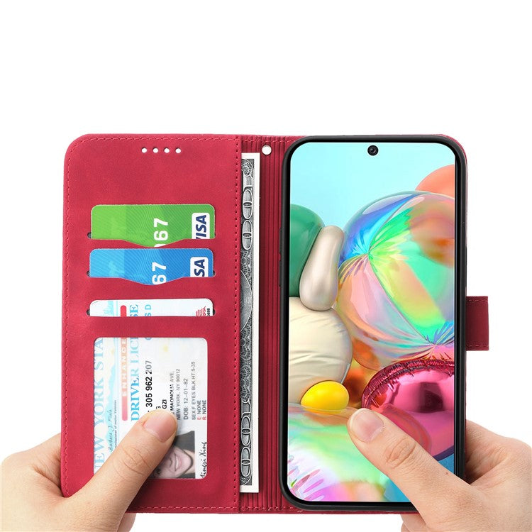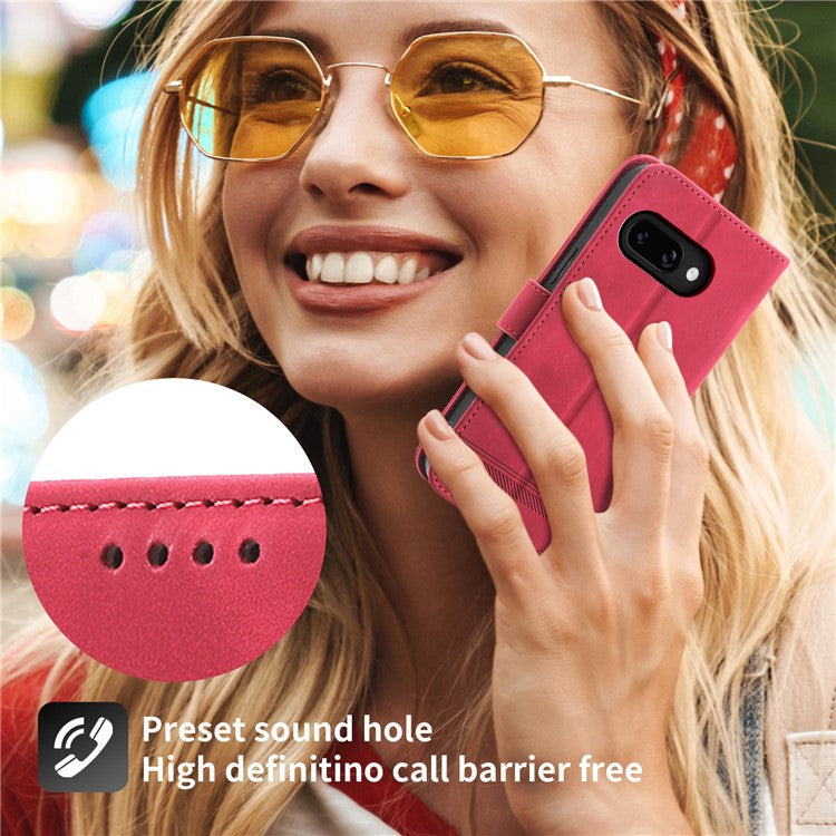 DIERFENG DF-03 For Google Pixel 9a Leather Case Lines Imprint Wallet Phone Cover - Red