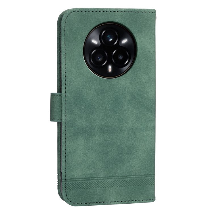 DIERFENG DF-03 For Realme 14 Pro 5G Leather Case Lines Imprint Wallet Phone Cover - Green