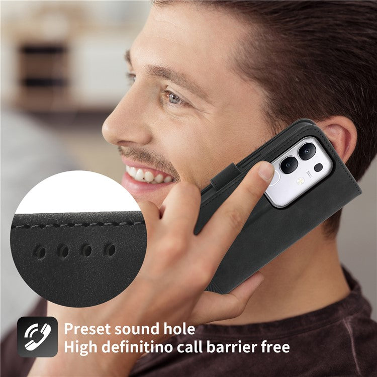 DIERFENG DF-03 For vivo Y29 4G Leather Case Lines Imprint Wallet Phone Cover - Black