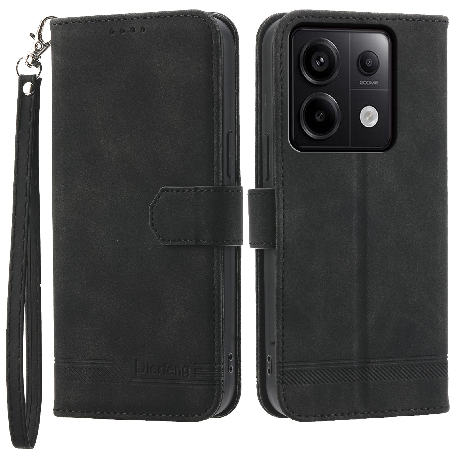 DIERFENG DF-03 for Xiaomi Redmi Note 13 Pro 5G / Poco X6 5G Case Wallet Phone Cover Lines Imprint - Black