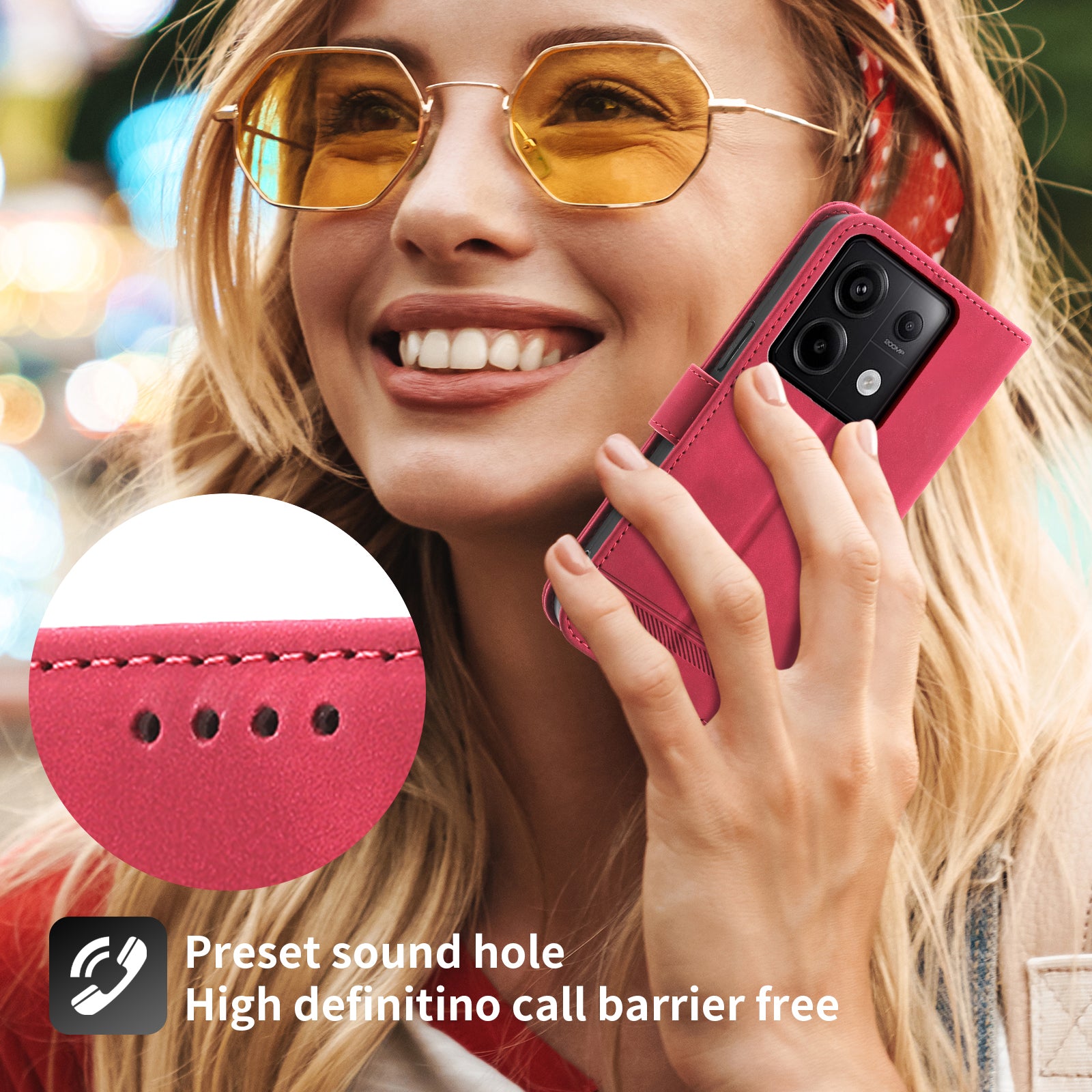 DIERFENG DF-03 for Xiaomi Redmi Note 13 Pro 5G / Poco X6 5G Case Wallet Phone Cover Lines Imprint - Red