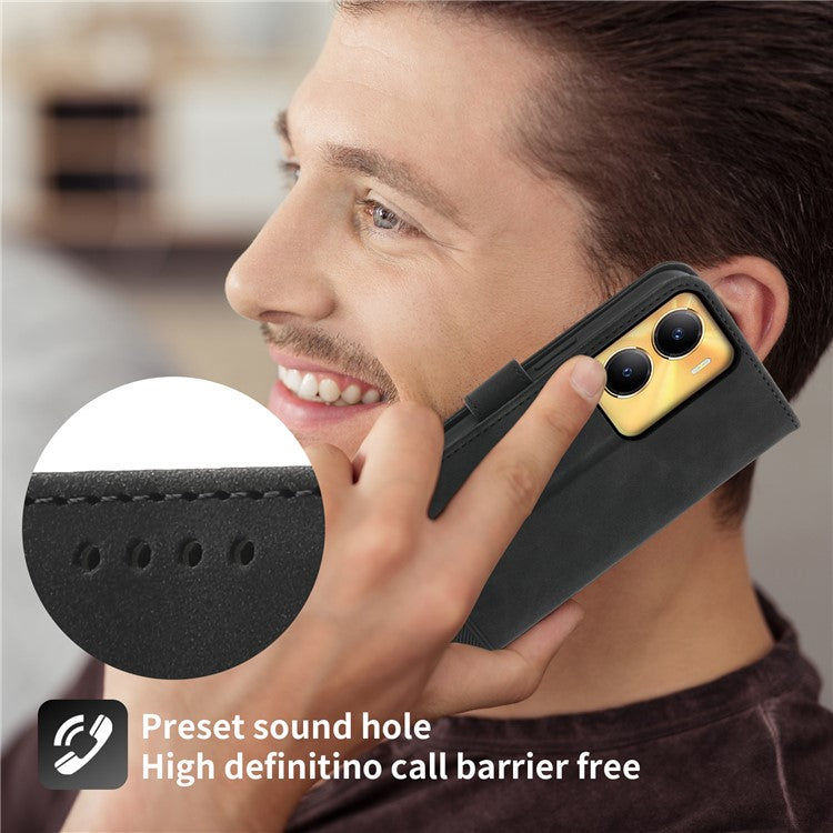 DIERFENG DF-03 Lines Imprinted Cover for vivo Y56 5G PU Leather Wallet Stand Phone Case - Black