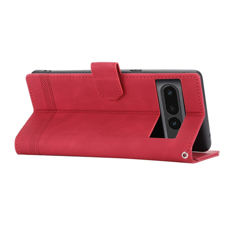 DIERFENG DF-03 Mobile Phone Leather Case for Google Pixel 7 Pro 5G, Lines Imprinted Phone Cover with Wallet Stand - Red