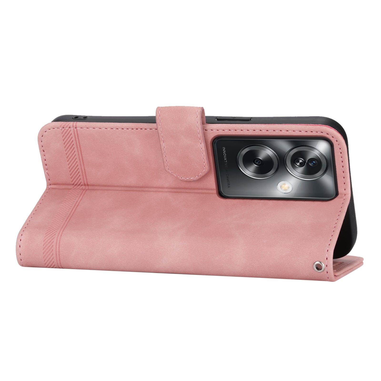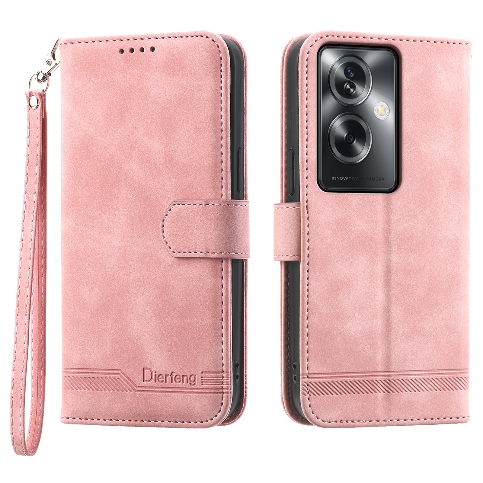 DIERFENG DF-03 Phone Stand Cover for Oppo A2 5G / A79 5G Shell Lines Imprinted Leather Case - Pink