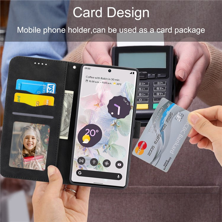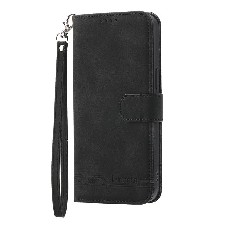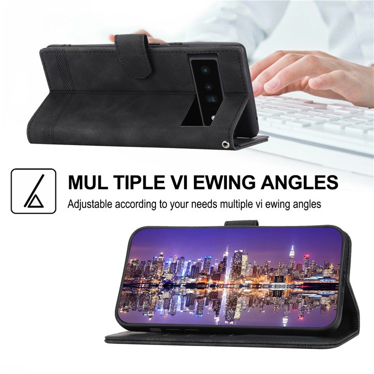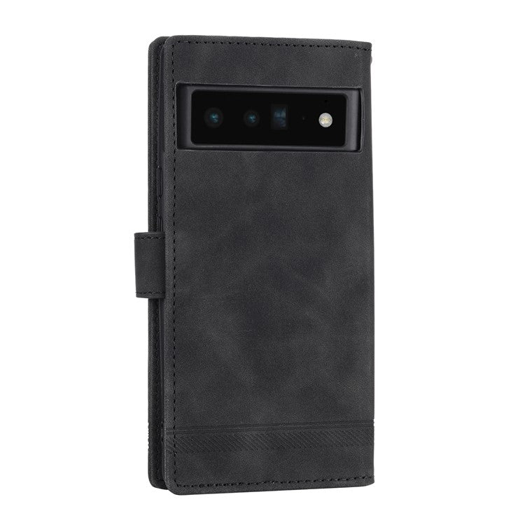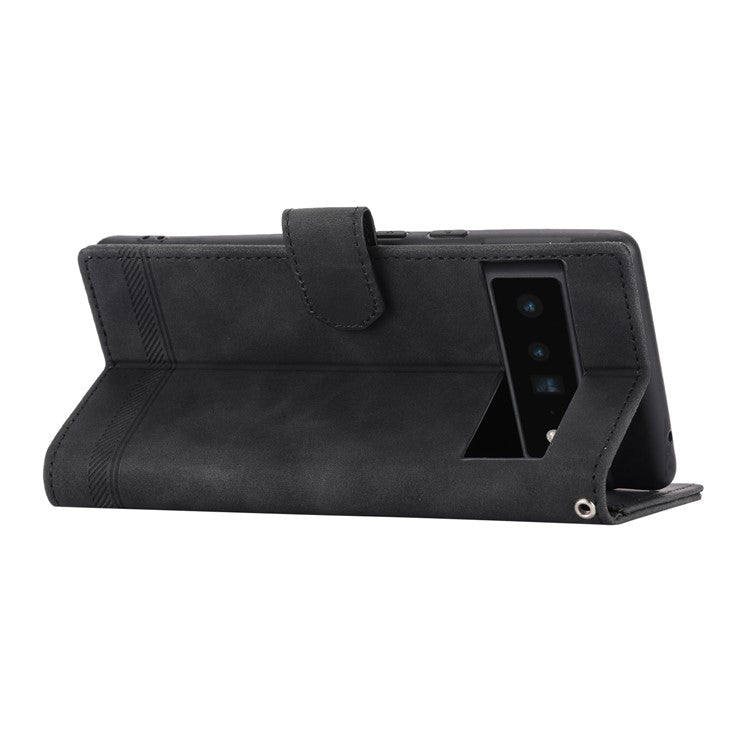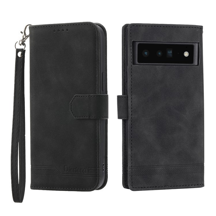 DIERFENG DF-03 Protective Phone Case for Google Pixel 6 Pro 5G, Anti-fall Flip Wallet Cover Stand with Lines Imprinting - Black