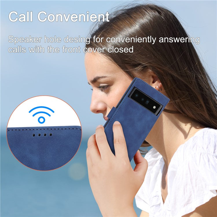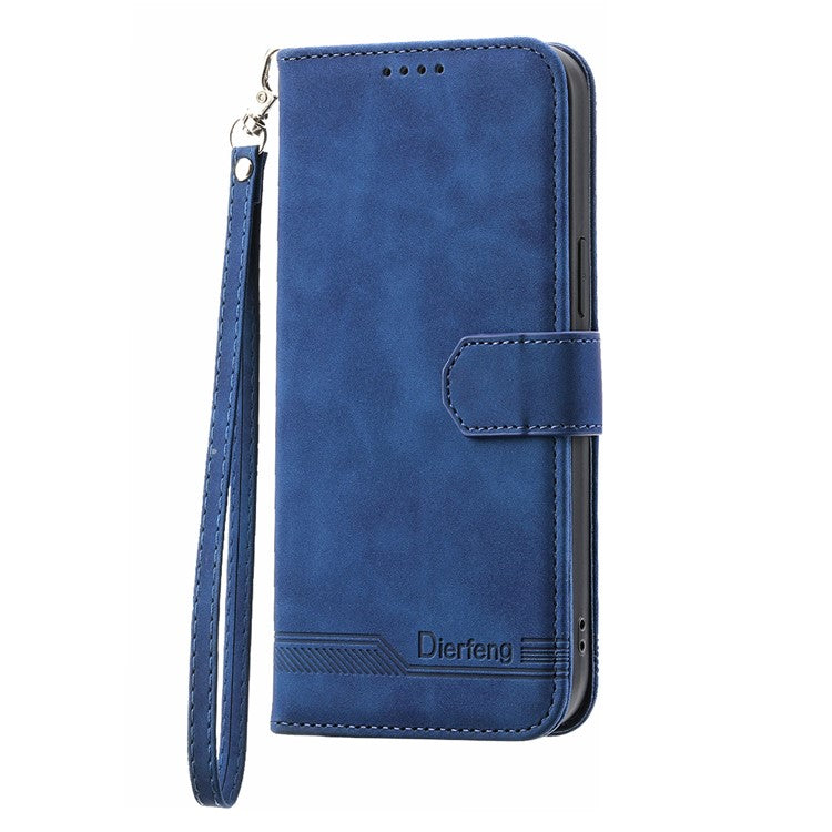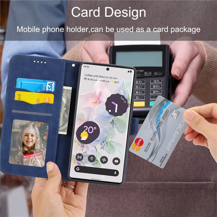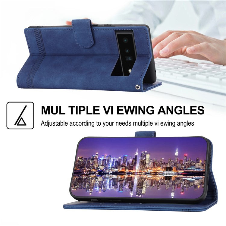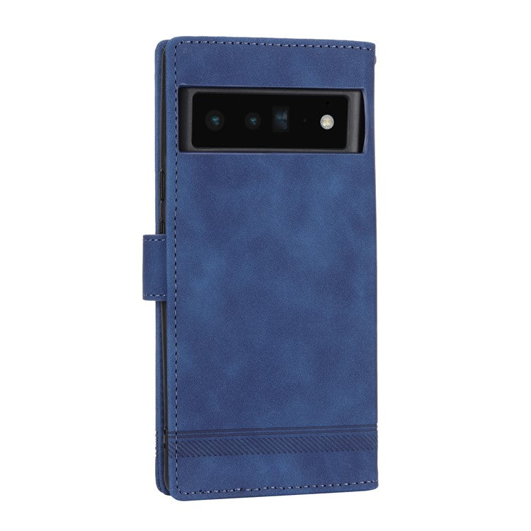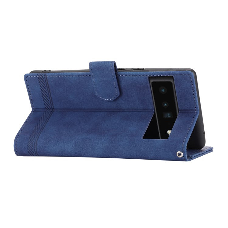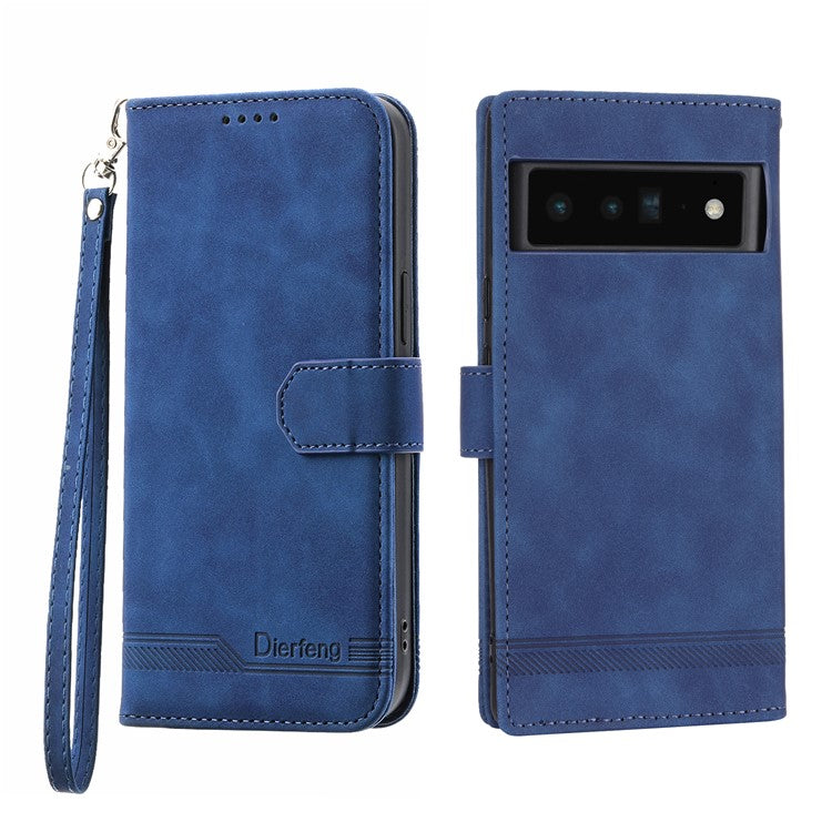 DIERFENG DF-03 Protective Phone Case for Google Pixel 6 Pro 5G, Anti-fall Flip Wallet Cover Stand with Lines Imprinting - Blue