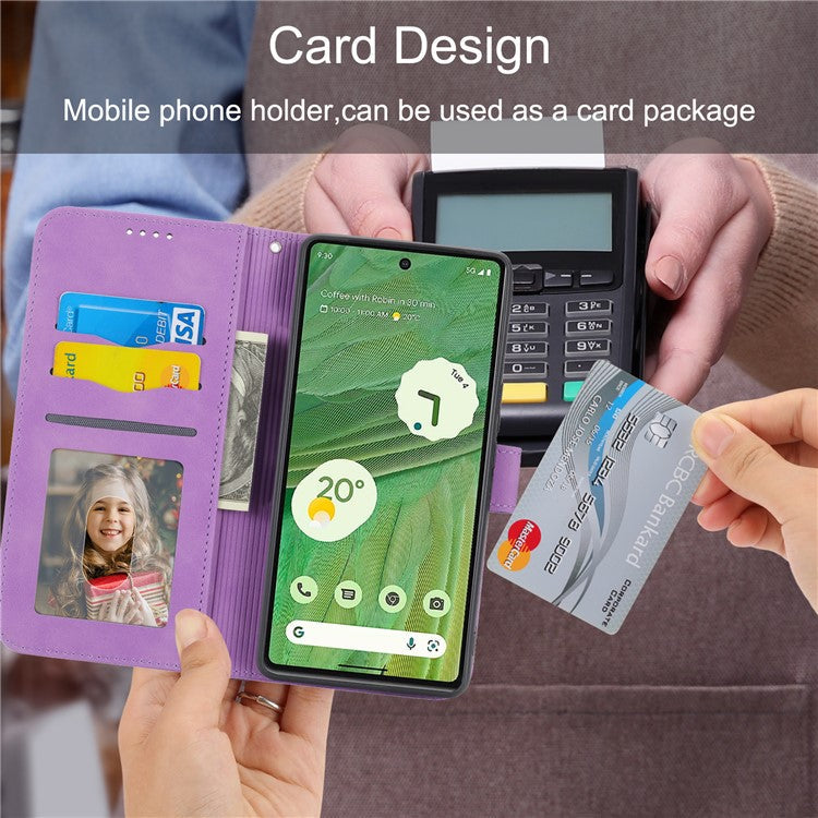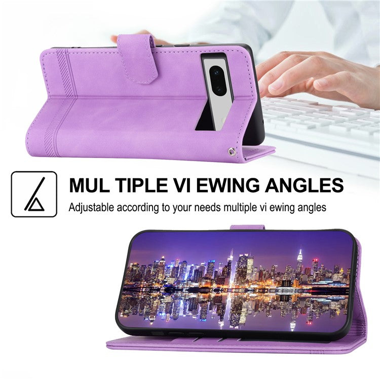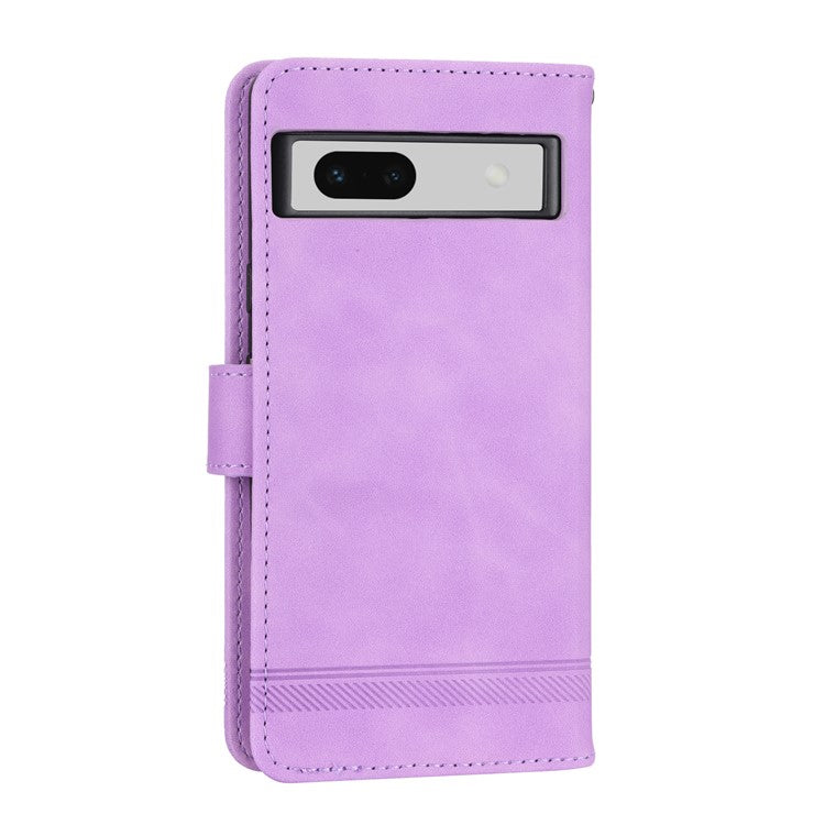 DIERFENG DF-03 PU Leather Wallet Case for Google Pixel 7a, Lines Imprinted Cell Phone Stand Cover - Purple