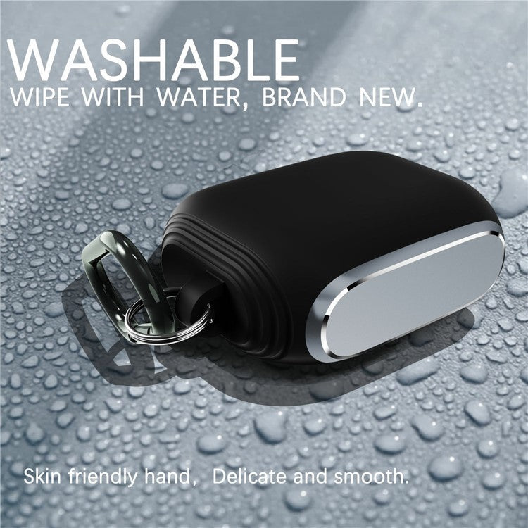 DIROSE A20 Silicone + Aluminum Alloy Earphone Cover Protective Case with Carabiner for Apple AirPods Pro - Black / Grey