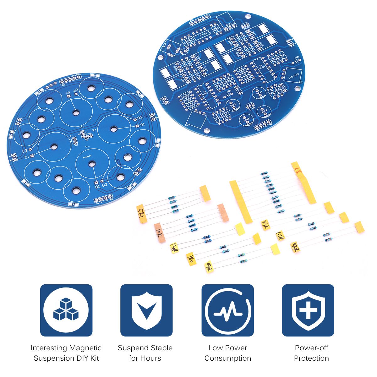 Features:The product adopts analog circuit design low power consumption.Interesting little levitation gadget can support weight up to 150g/300g.Perform well that it can suspend stably for hours.With power-off protection to ensures safety operation.Suitable for students to learn the principle of welding circuit diagram.Specifications:Weight Capacity: 150g / 300g (Optional)Material: ABSPlug: US Power: 5WPower Supply: AC-DC 12V 2AItem Size: Approx. 90 * 90 * 32mm / 3.54 * 3.54 * 1.26inPackage Size: 15.5 * 15 * 5cm / 6.10 * 5.91 * 1.77in150g:Levitating Weight: 150gSuspension Distance: 1.7cmBase Diameter: 88mm / 3.46inBase Height: 27mm / 1.06inItem Weight: 311g / 10.99ozPackage Weight: 385g / 13.59oz300g:Levitating Weight: 300gSuspension Distance: 2cmBase Diameter: 88mm / 3.46inBase Height: 27mm / 1.06inItem Weight: 426g / 15.01ozPackage Weight: 500g / 17.66ozPackage List:1 * DIY Kit1 * PlugNote:The components are plug-in type which need to be welded by yourself. Thus it requires electronic foundation and hands-on capability for there is a certain difficulty. Please think twice before purchasing.
