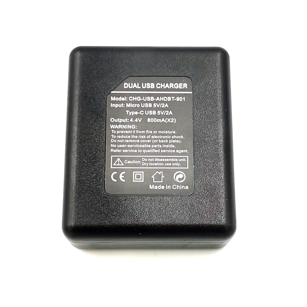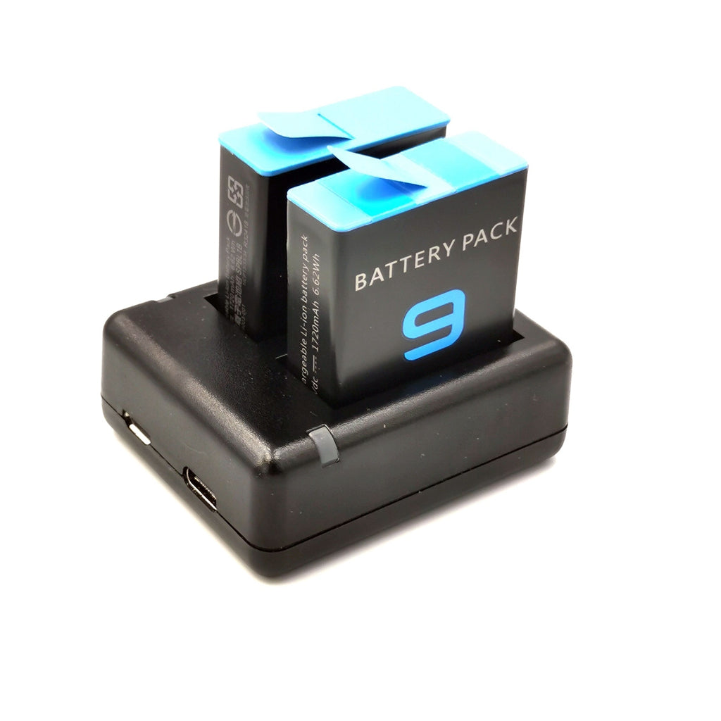 This batteries charger has 2 charging slots, it can simultaneously charge up to 2 batteries