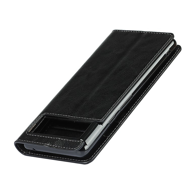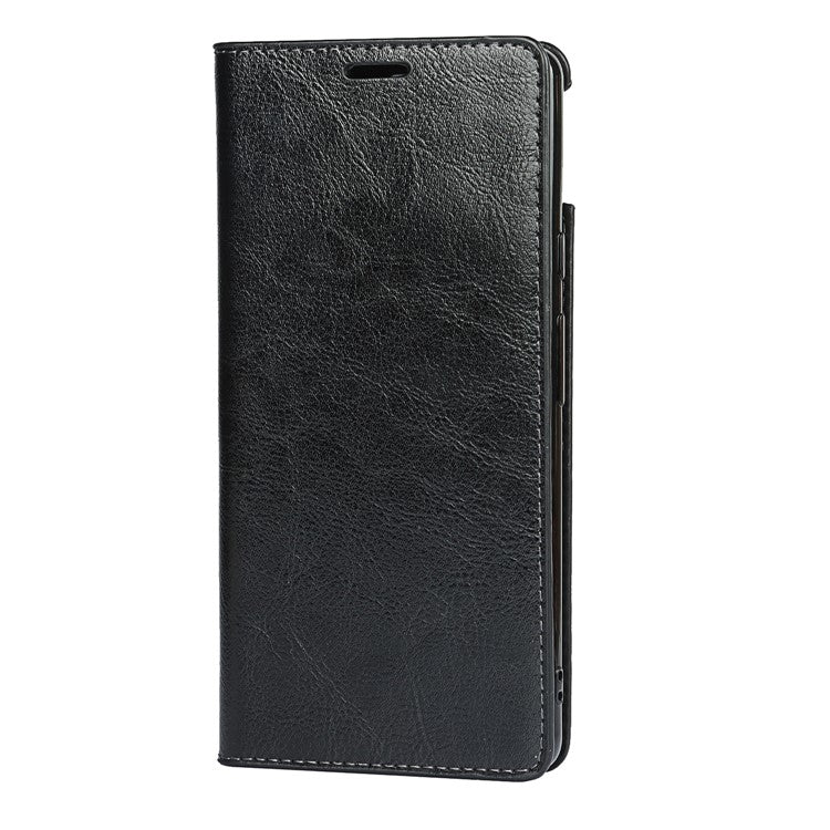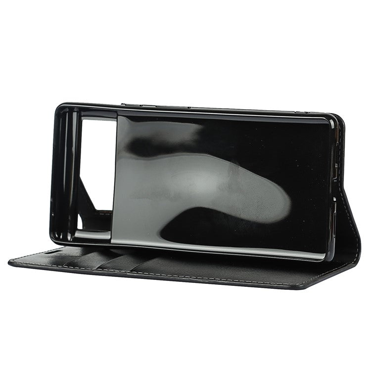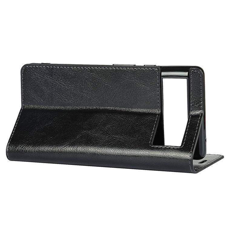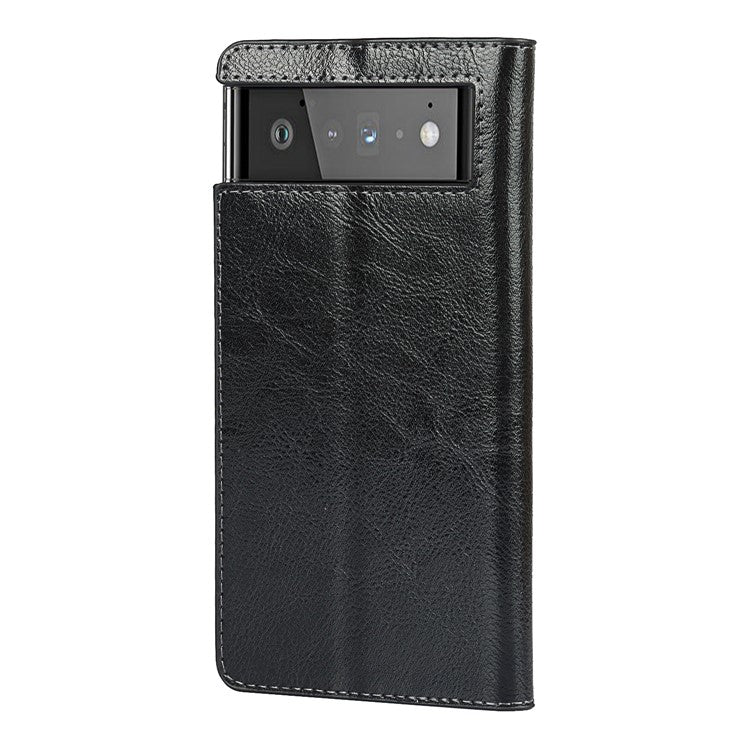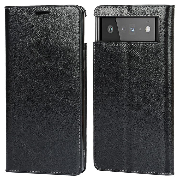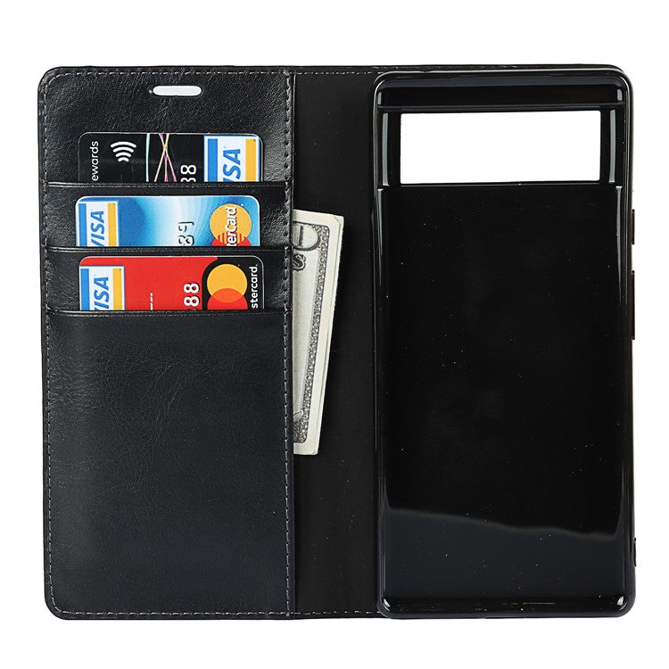 Drop-Proof Crazy Horse Genuine Leather Case with Wallet Stand Design for Google Pixel 6 - Black