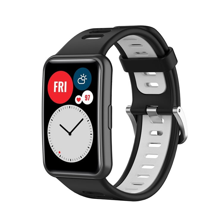 Dual Color Silicone Watch Strap for Huawei Watch Fit Special Edition B39 / (TIA-B09 / TIA-B19) - Black / White