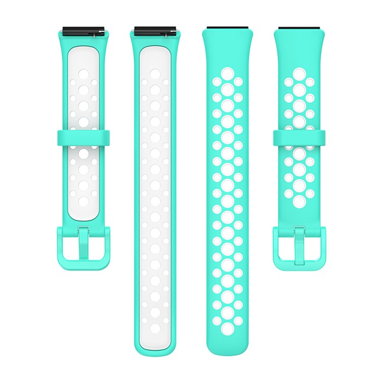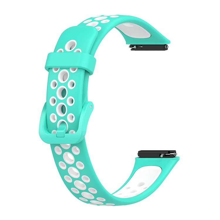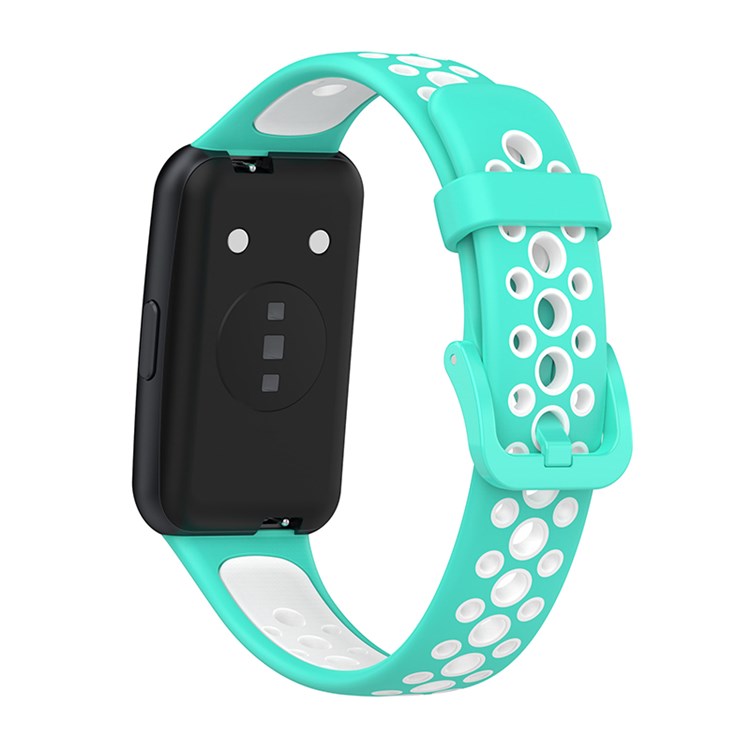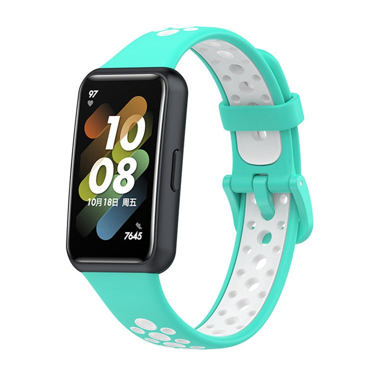Dual Color Watch Band for Huawei Band 7, Pin Buckle Soft TPU Wrist Strap Replacement - Cyan/White