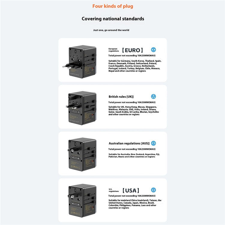 - [Universal Compatibility] The A35Pro features an integrated design for plug standards from various countries. With simple three switches, it adapts for use in 224 countries, allowing effortless one-handed operation for both charging and power outlet needs