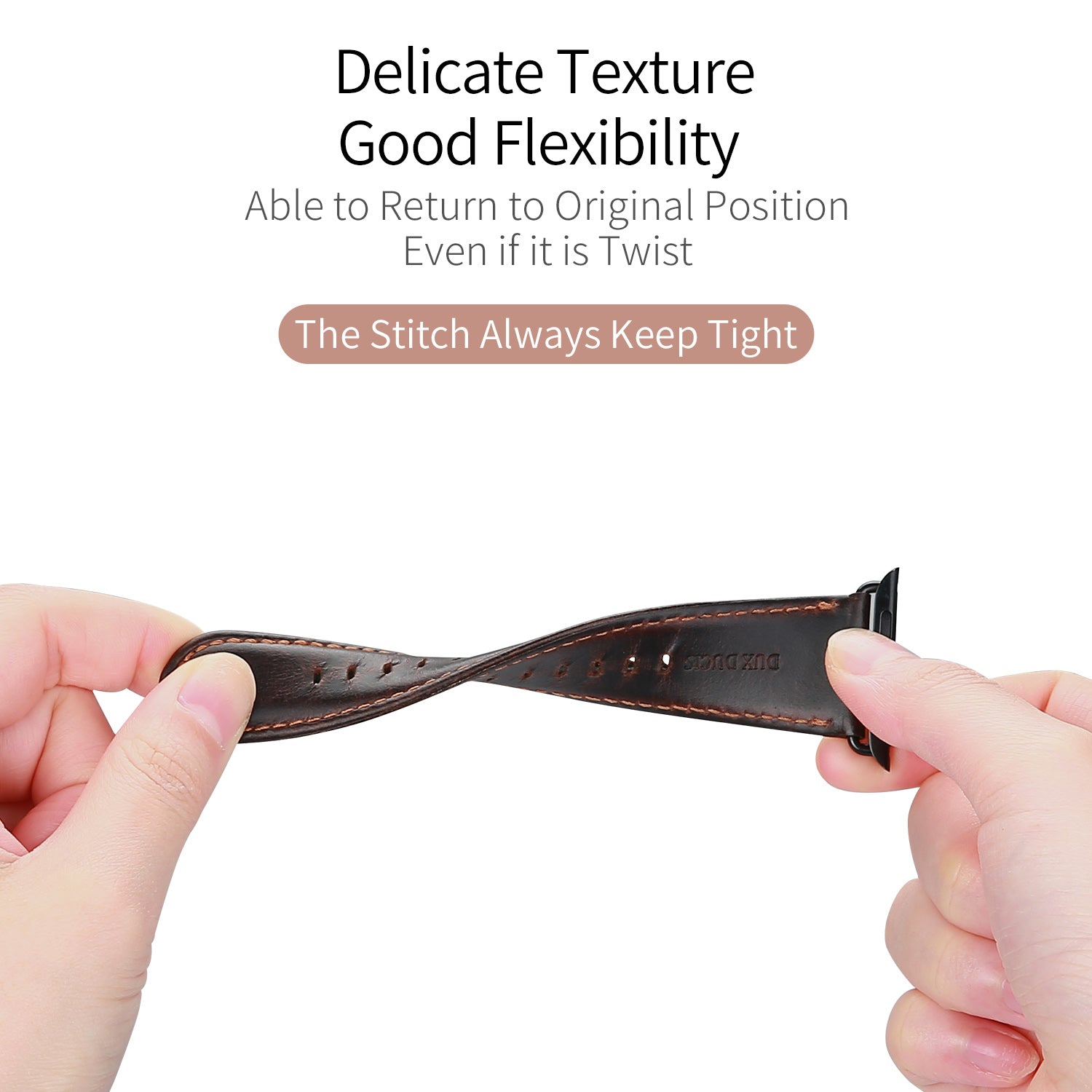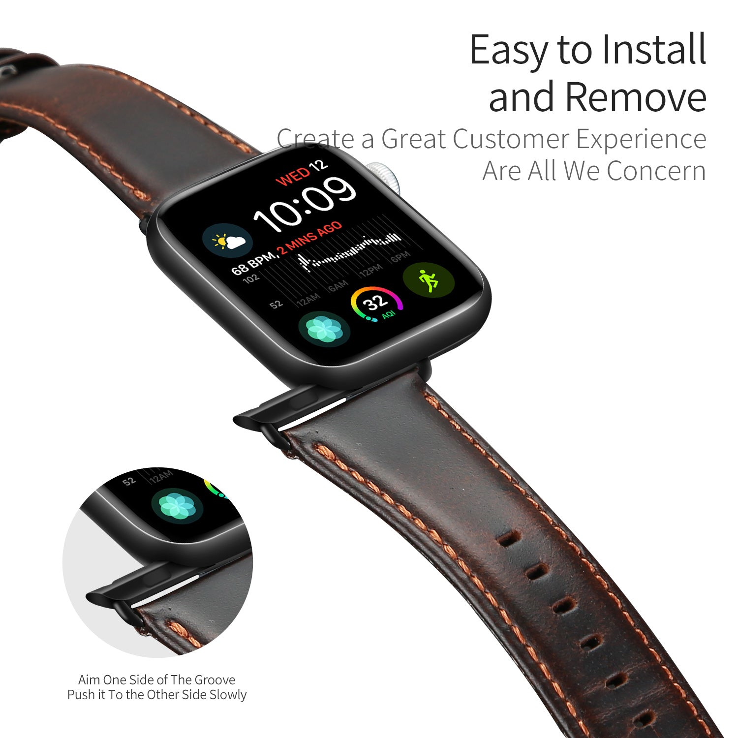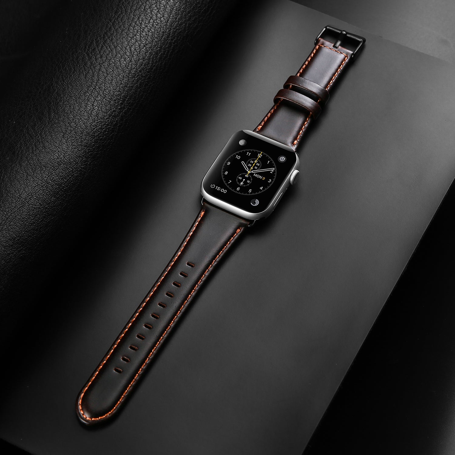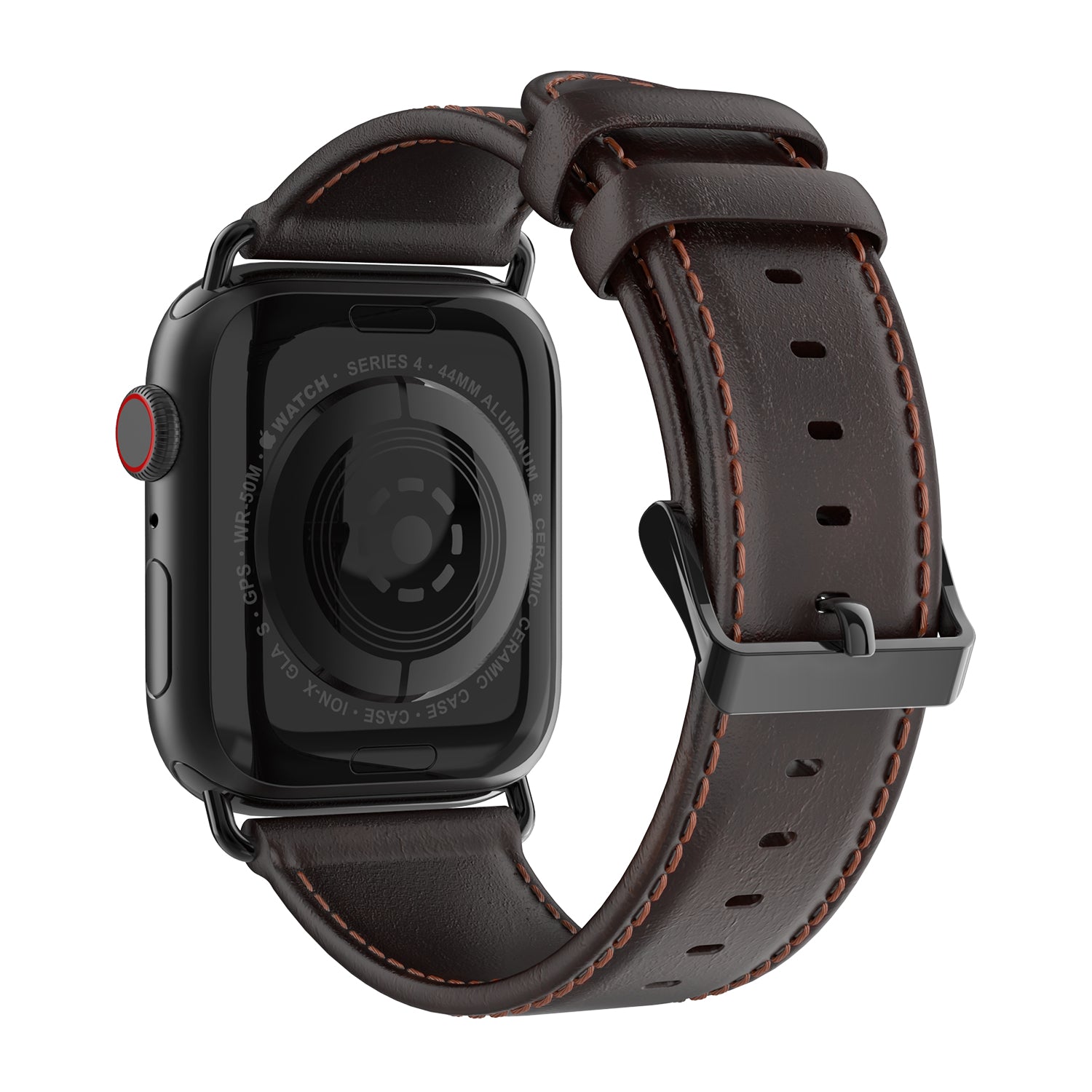 Business Genuine Leather Watch Strap with Stainless Steel Buckle for Apple Watch Series 8 45mm / 7 45mm / Series 6 / SE / SE (2022) / 5 4 44mm / Series 3 2 1 42mm - Coffee