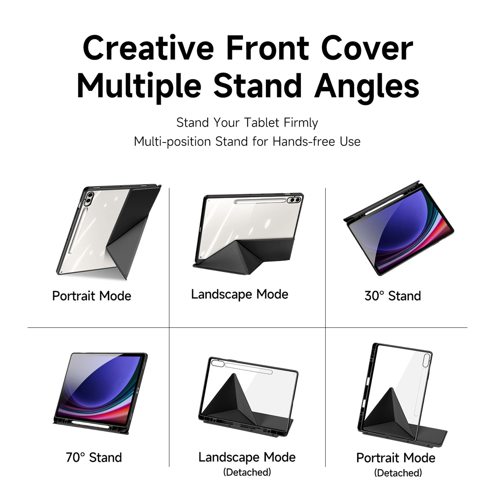 DUX DUCIS Magi Series for Samsung Galaxy Tab S9+ / S9 FE+ Leather Case Origami Stand Auto Wake / Sleep Cover - Black