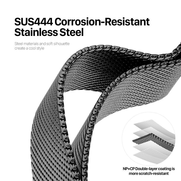 DUX DUCIS Milanese Pro Series Strap for Apple Watch Series 10 46mm / Ultra 2 / Ultra 49mm / 9 8 7 45mm / SE (2023) SE (2022) SE 6 5 4 44mm / 3 2 1 42mm Metal Watch Band - Black