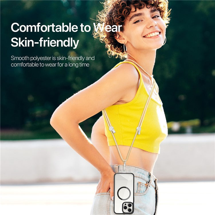 DUX DUCIS PLAZ Series 146cm Phone Lanyard Polyester Crossbody Strap Neck Rope with Tether Tab - Glaze Yellow