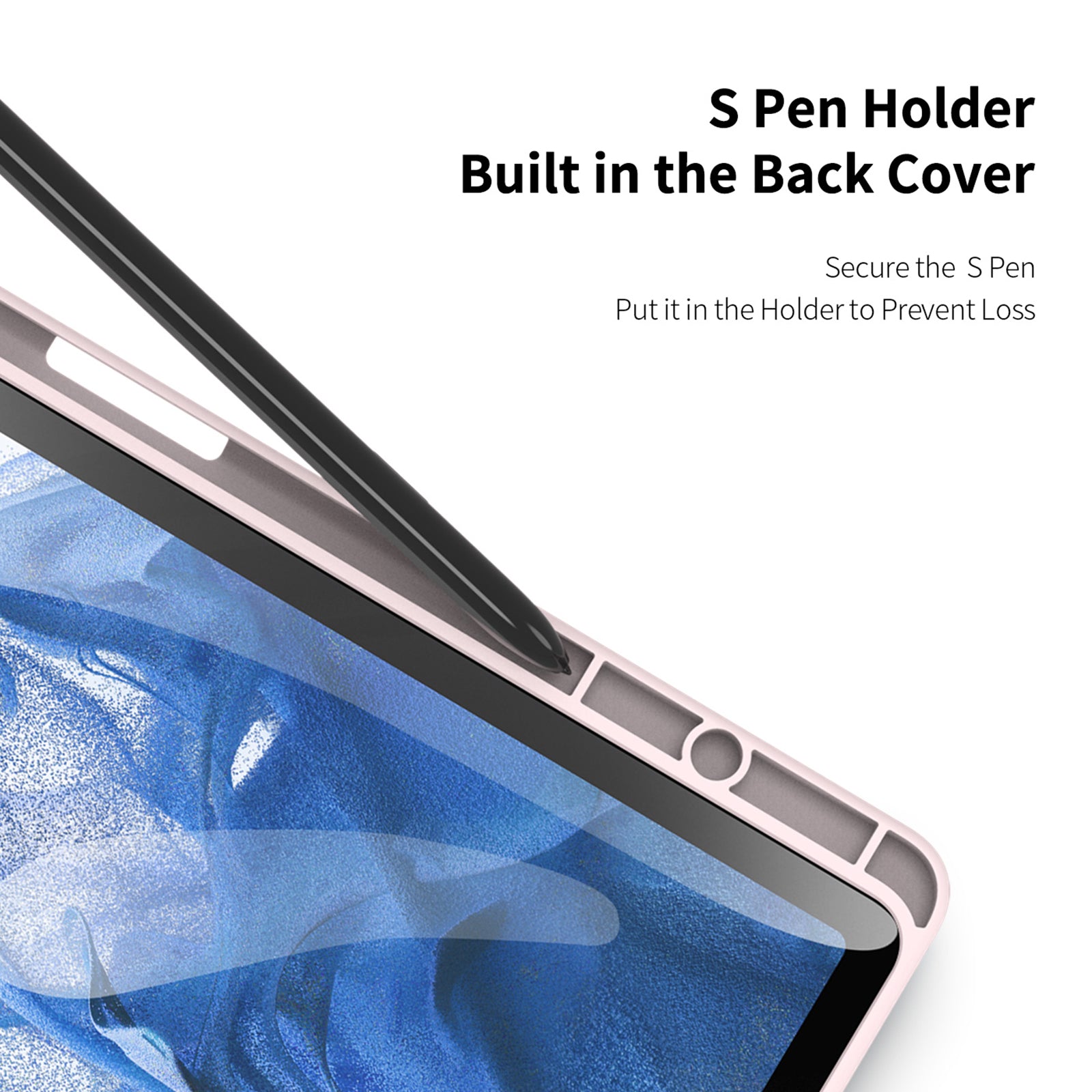 DUX DUCIS TOBY Series For Samsung Galaxy Tab S9 FE+ Tablet Leather Case Tri-fold Stand Cover with Pen Slot - Light Pink